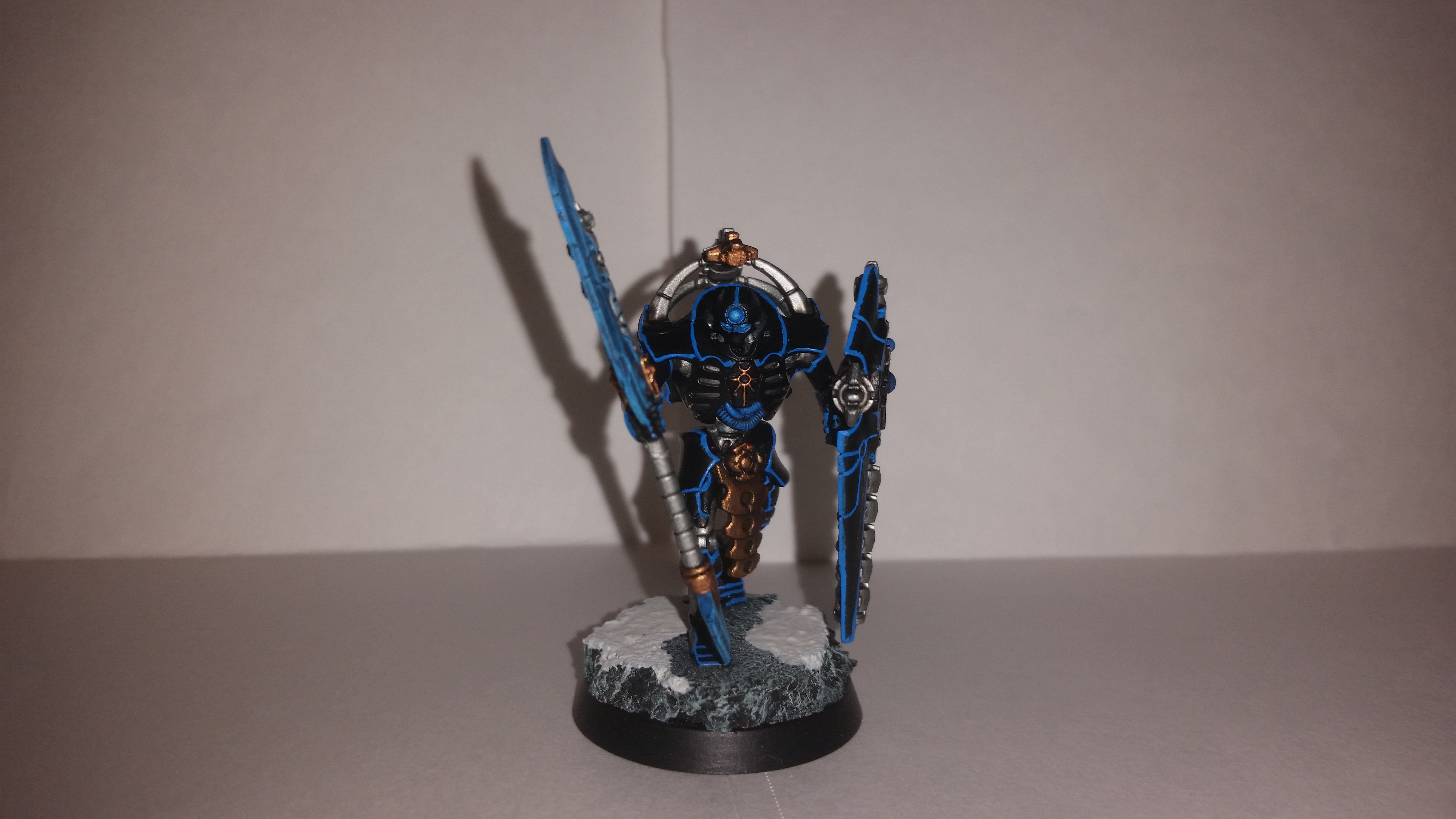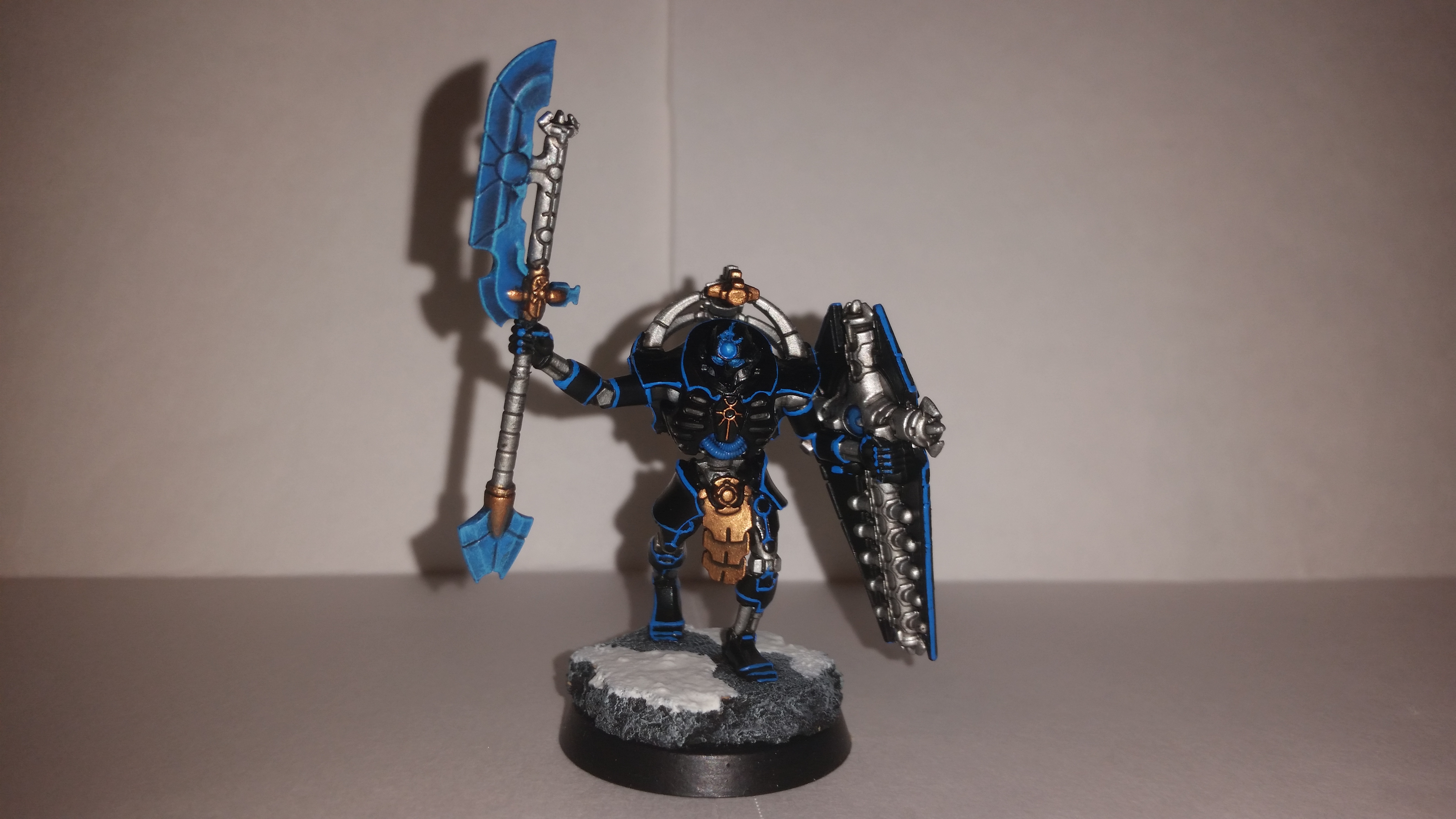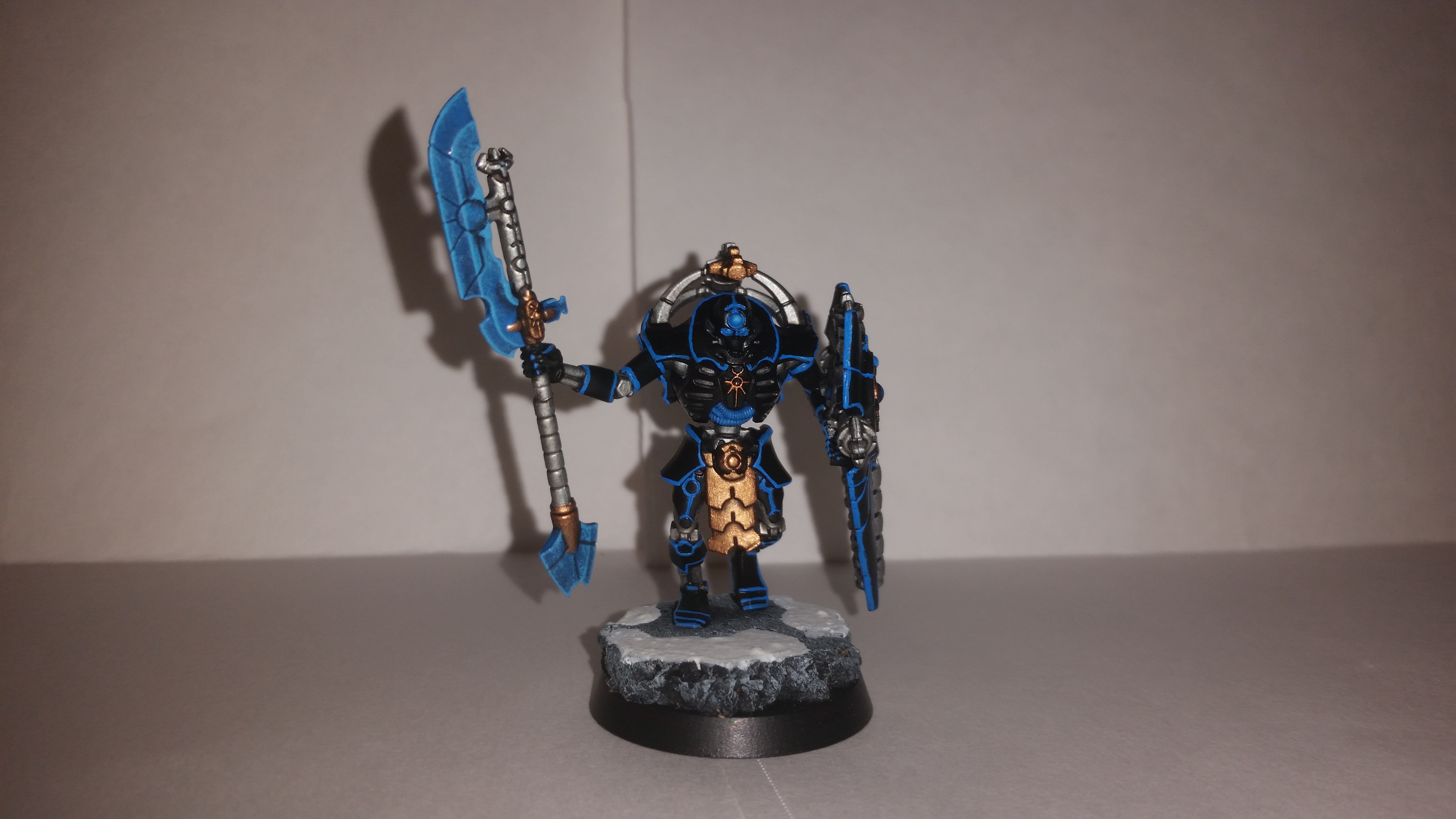 Hello Dakka, just finished painting up some Lychguard that are converted up to, without magnetization, to be able to field them as sword and board or scythe. Comments and suggestions are welcome.
