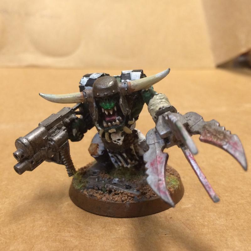 The first one must be Dethork himself, my Warboss. I painted Dethork roughly ten years ago and while I hope my painting skills have improved some, this is still one of my favorite minis. There are a few chips here and there as he's been used rather extensively. This is also one of my first converted minis with the Power Klaw made from old