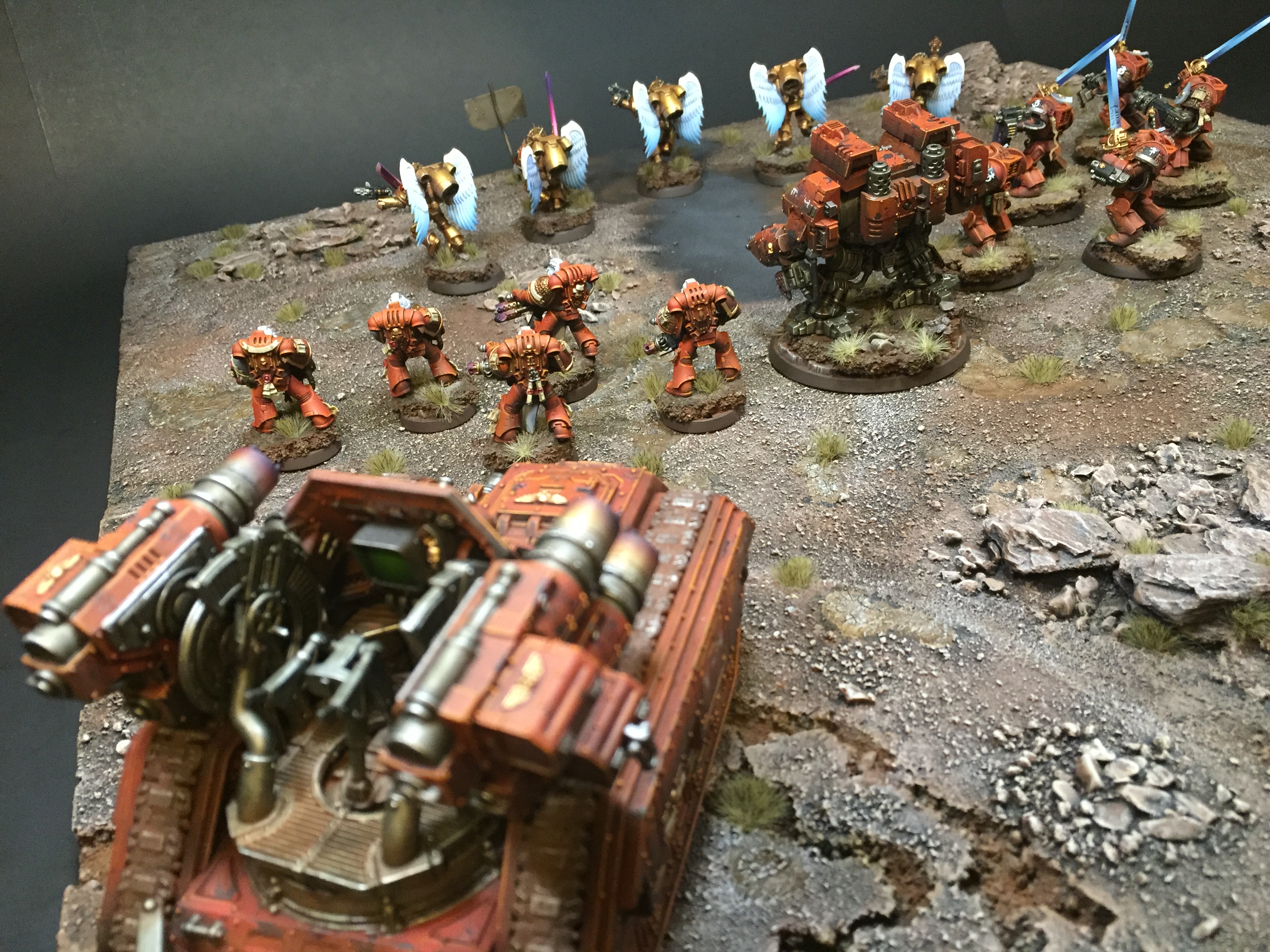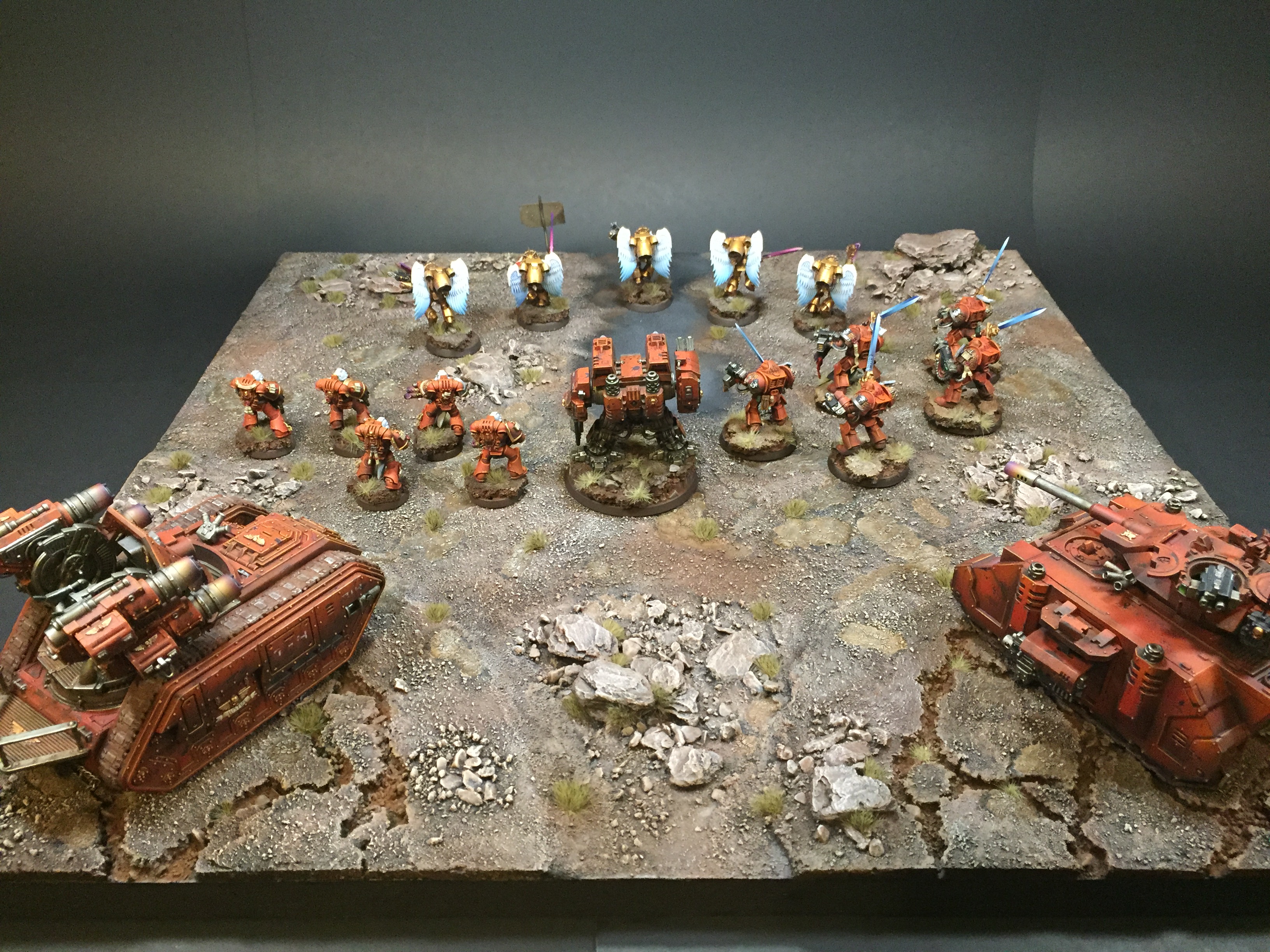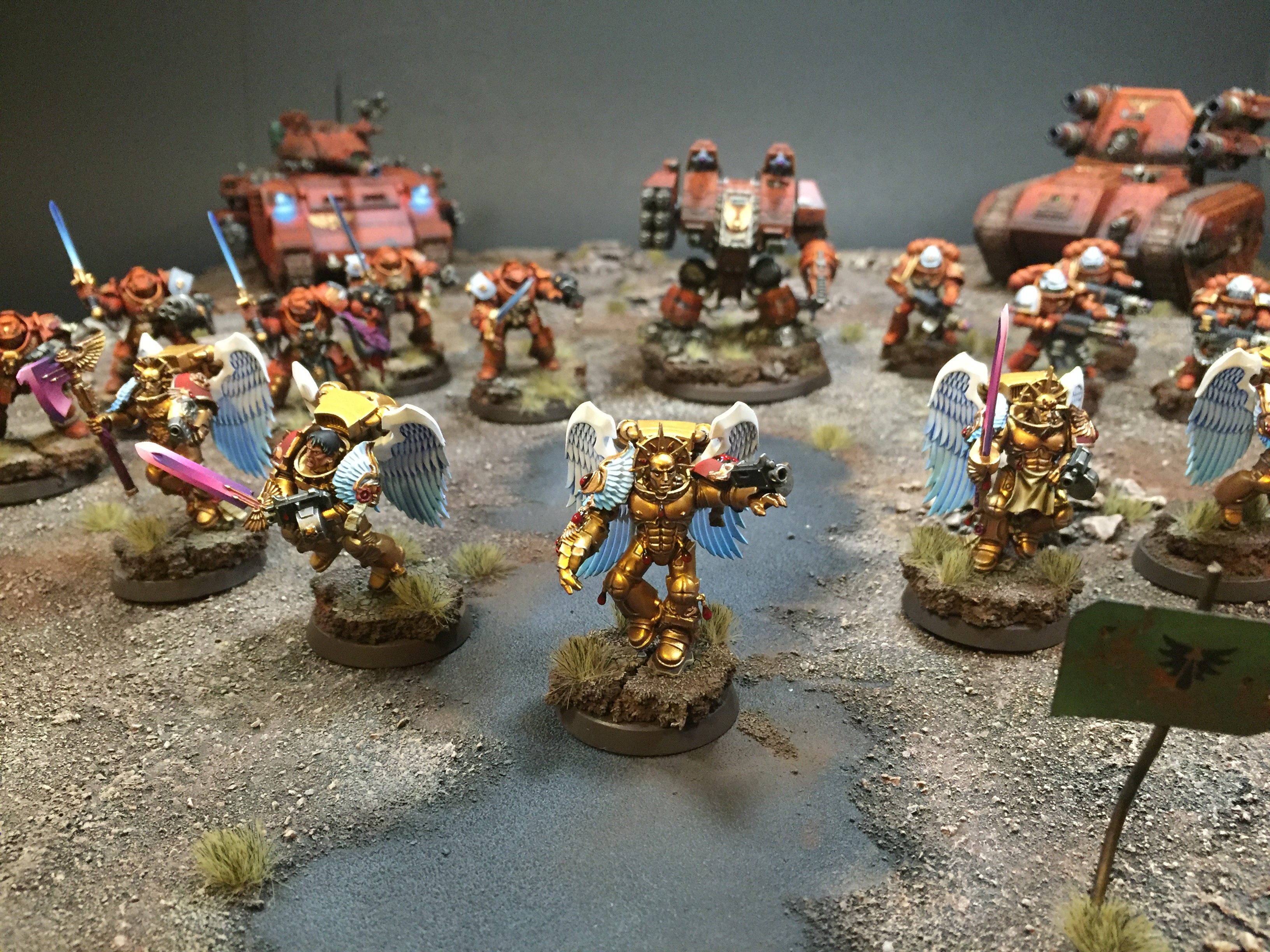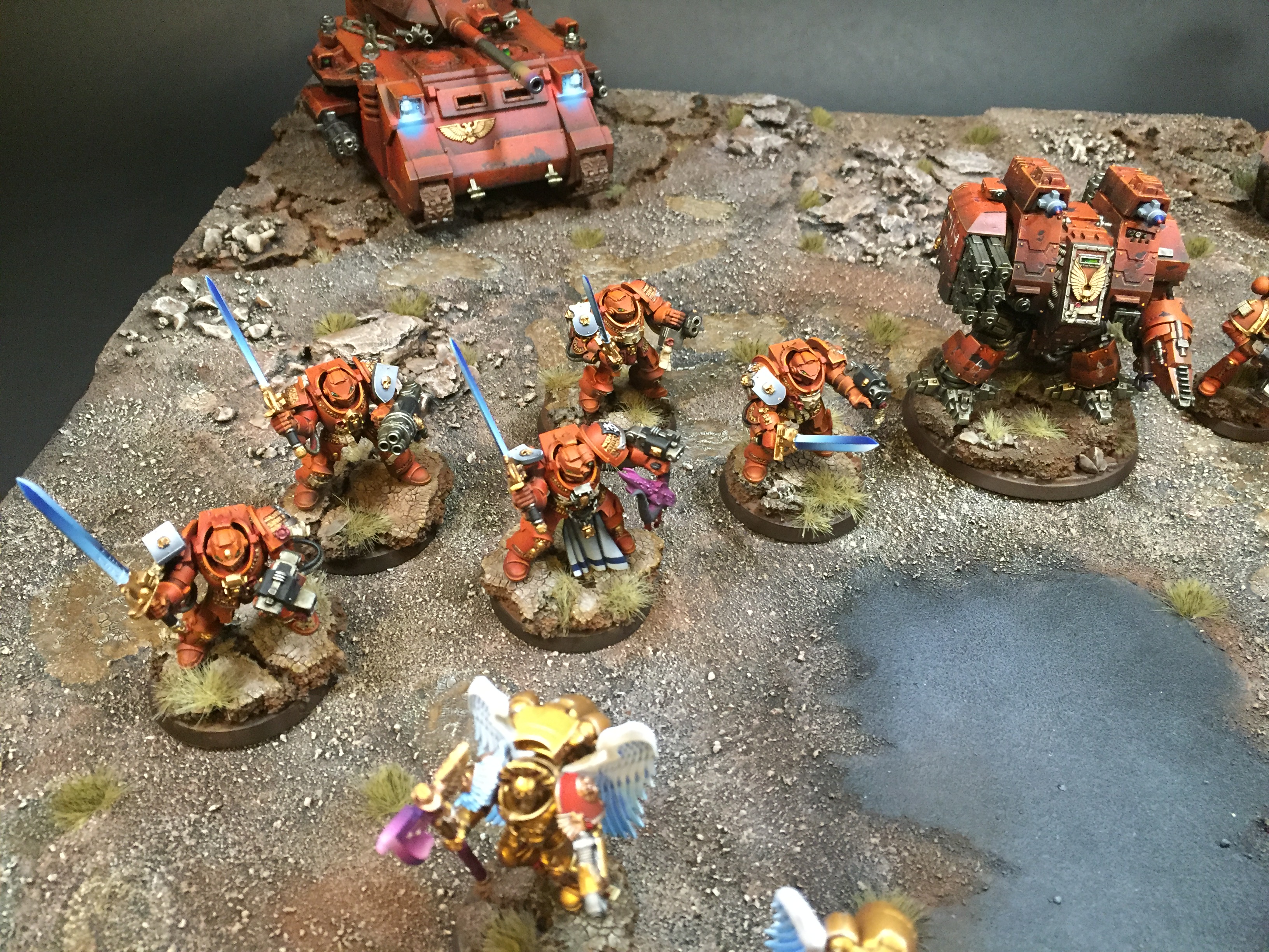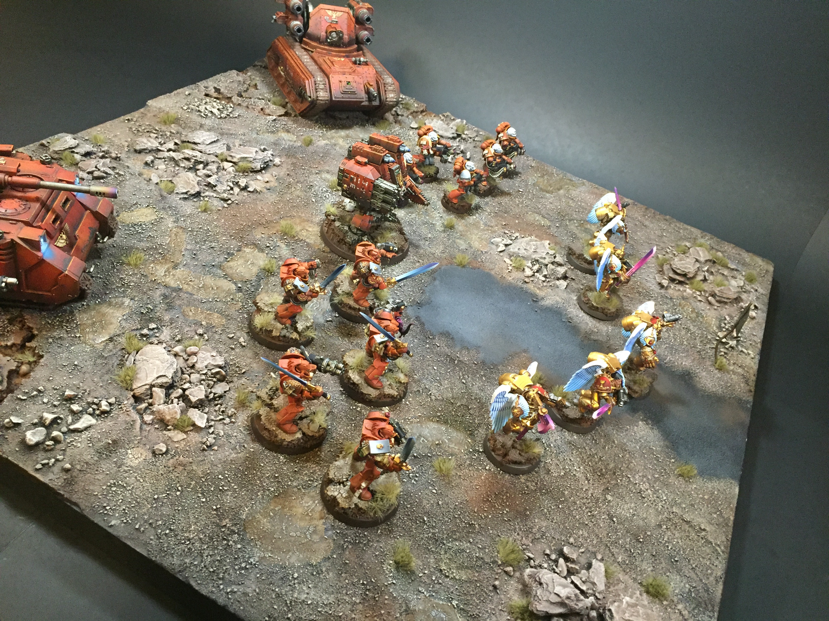 I took a hiatus from a lot of things in order to complete this piece. I took a break from lifting, ate nothing but maggoty bread for three stinking days, and smelled man flesh as I tracked a party of three through the realm of Rohan  Here is the final result. I chose models that I liked, and I pieced them together in one of my favorite factions of the Adeptus Astartes, the Blood Angels. I like to think of this as an elite strike force in a wasteland, one that could choose any weapon or equipment from the armories of the Imperium in order to combat the enemies of man.  Pic heavy, hope you enjoy!