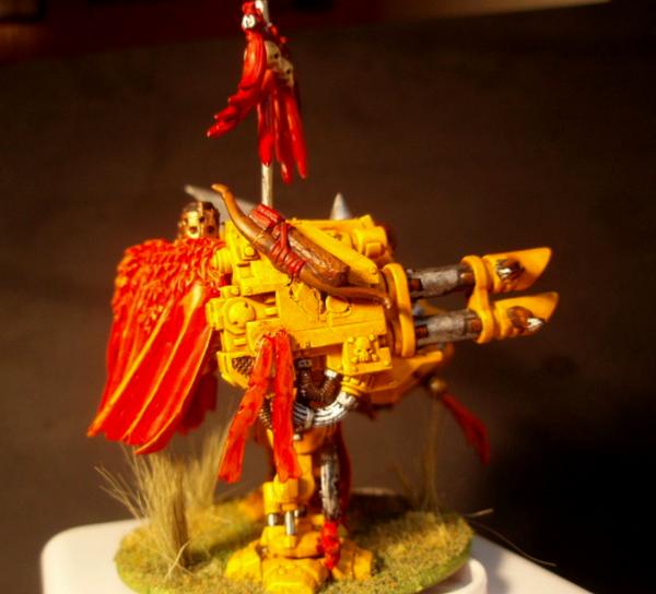 This is from my White Scars themed army. My concept is mongols of course. So I gave him a cape and other mongol bits. I also basically hand crafted and sculpted his right arm. The sword is plasticard, the hilt two tomb king banner pieces. I call him Obadai, and he kicks but! The rest of my Space Leopards are on my edwardmyst page on weebly. I know I'm no golden demon winner, but he came out looking like a bad dude...