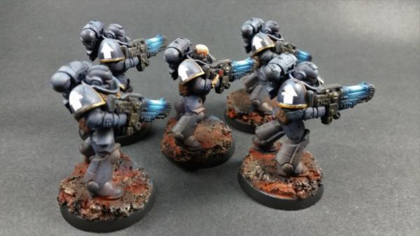 @r3n3g8b0y- Yes the plasma effect is with an Airbrush. I just start with a middle tone blue and add white along the way. There is like 4 colors going up in shades. I tried to keep it tight with no too much over spray on the Primaris Marines. The Airbrush is a huge time saver for effects like this for me, as Wednesday are my "work" day for painting. I finished these models in two sessions.