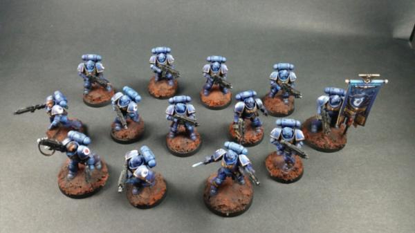 Nice solid work. If I'm to be picky, Ultras look a little chalky here and there (bit too far with the zenithal airbrush work, maybe), could do with a thin blue ink glaze / wash work to bring the vibrancy back and fill some lines. That'd probably push the time/cost up a wee bit though.