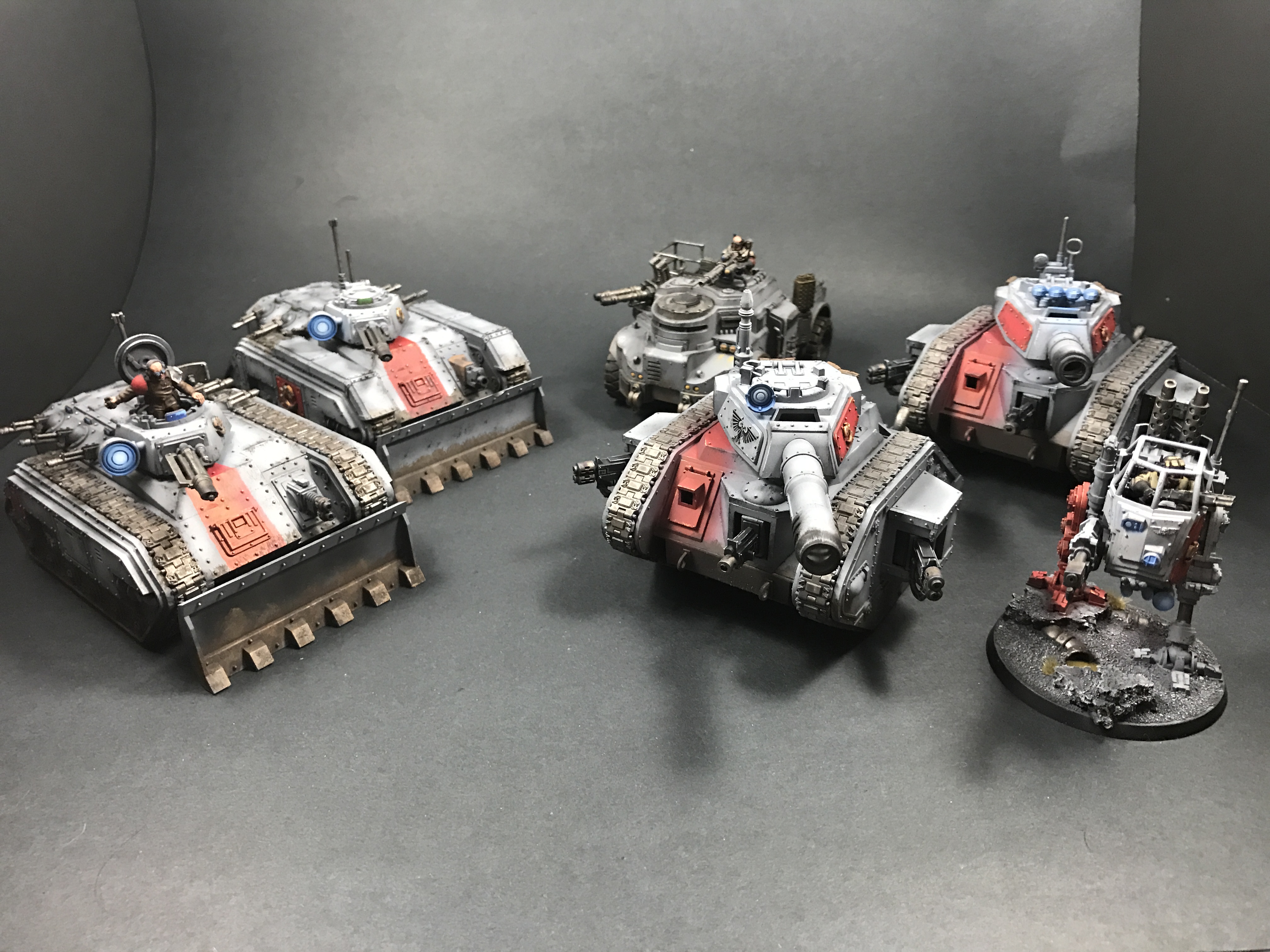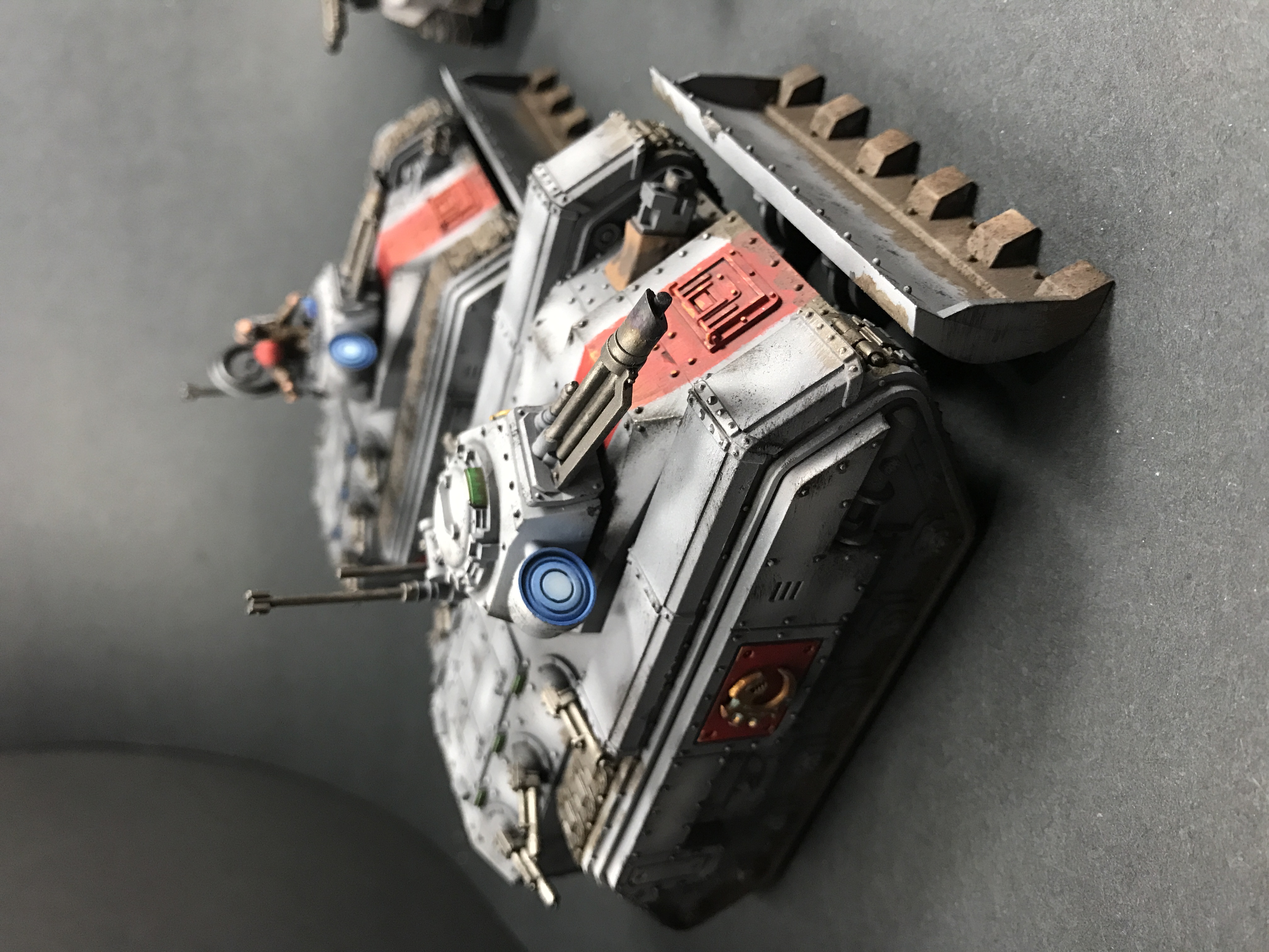 Thanks for the comments. Yeah the realistic style has always appealed to me, it being never ending war and all. I'll be sure to post some more photos in the future and show some things I'm working on. Automatically Appended Next Post: Two more shots of some Blood Angels tanks and a Dark Angel Tac squad