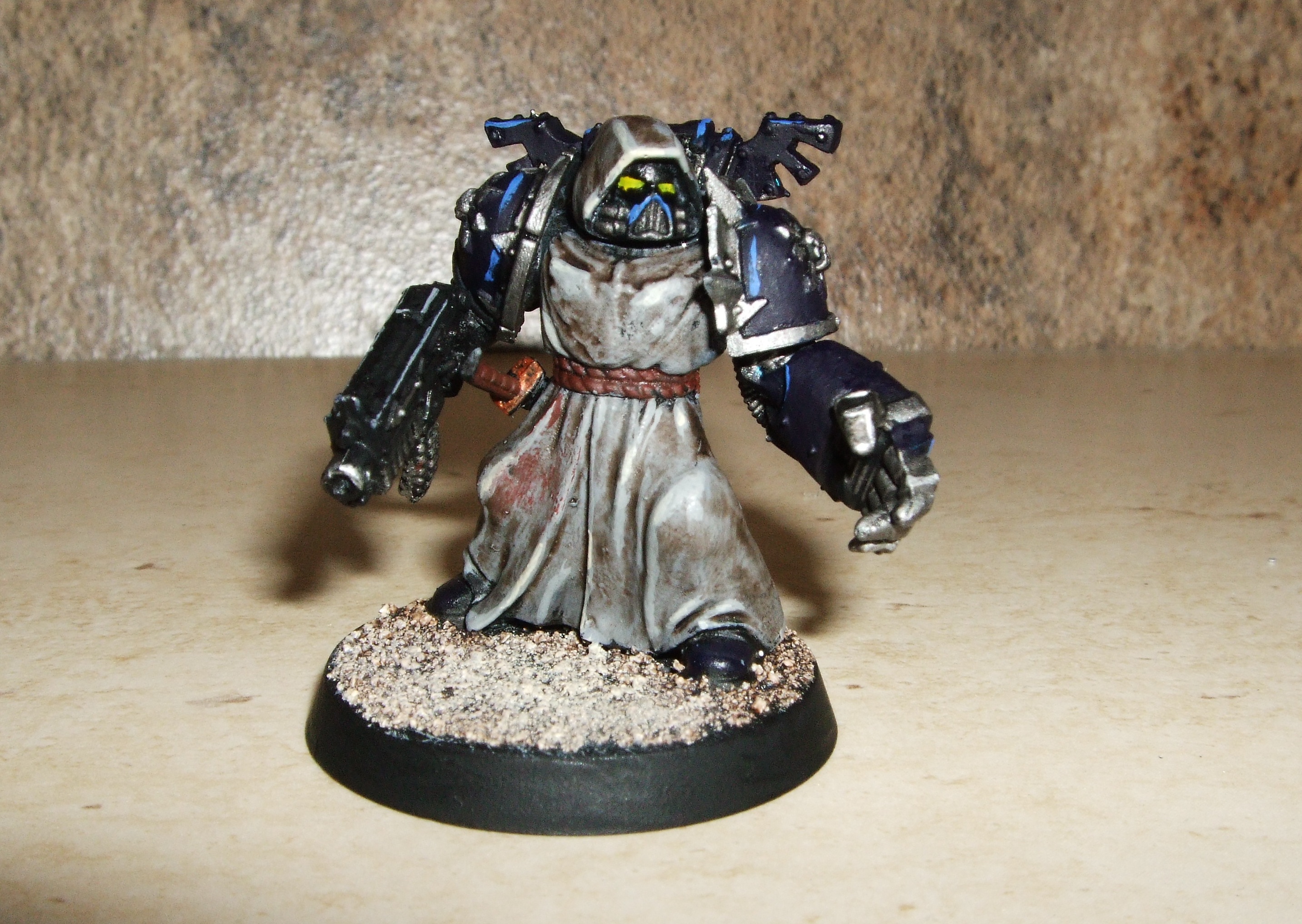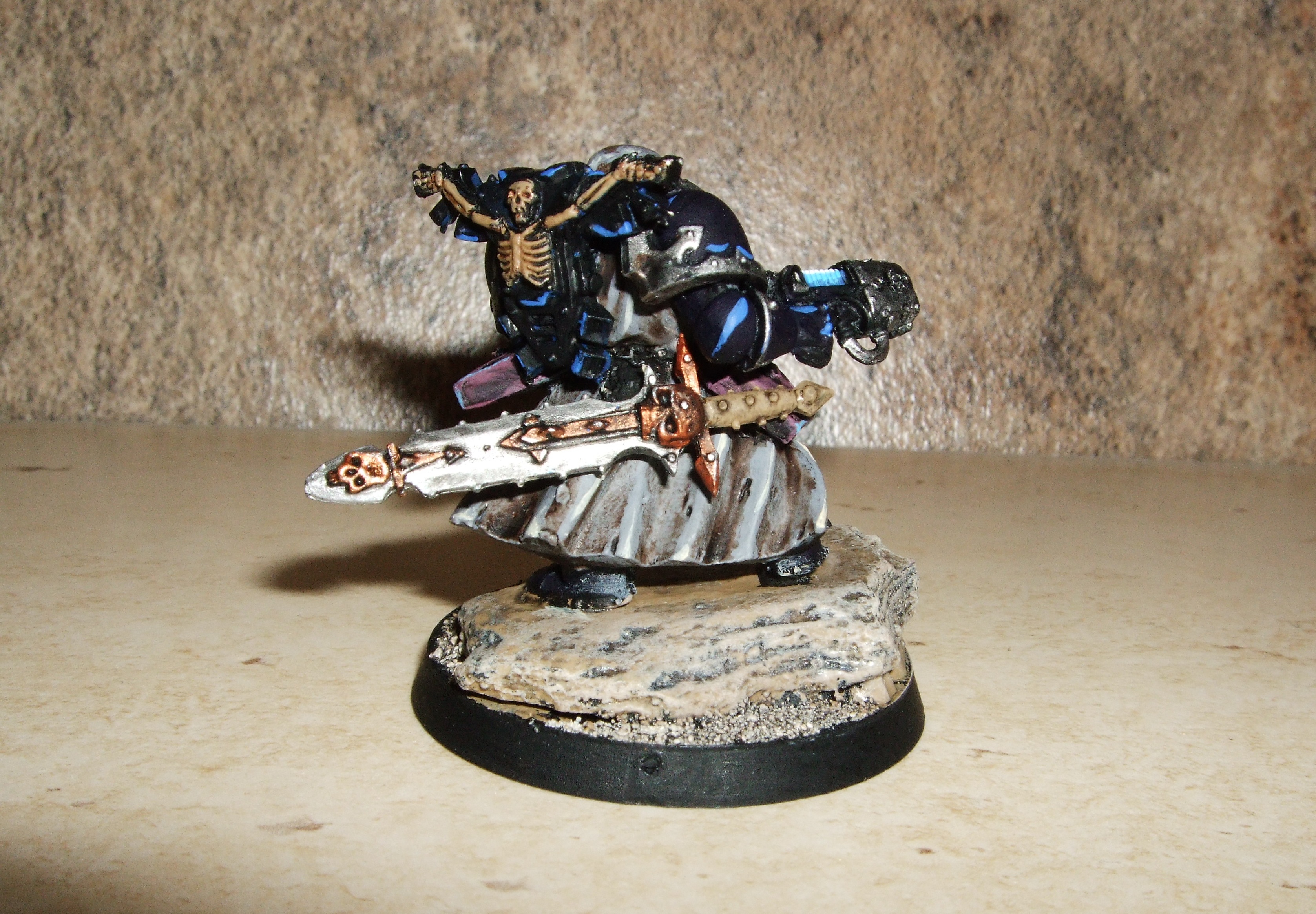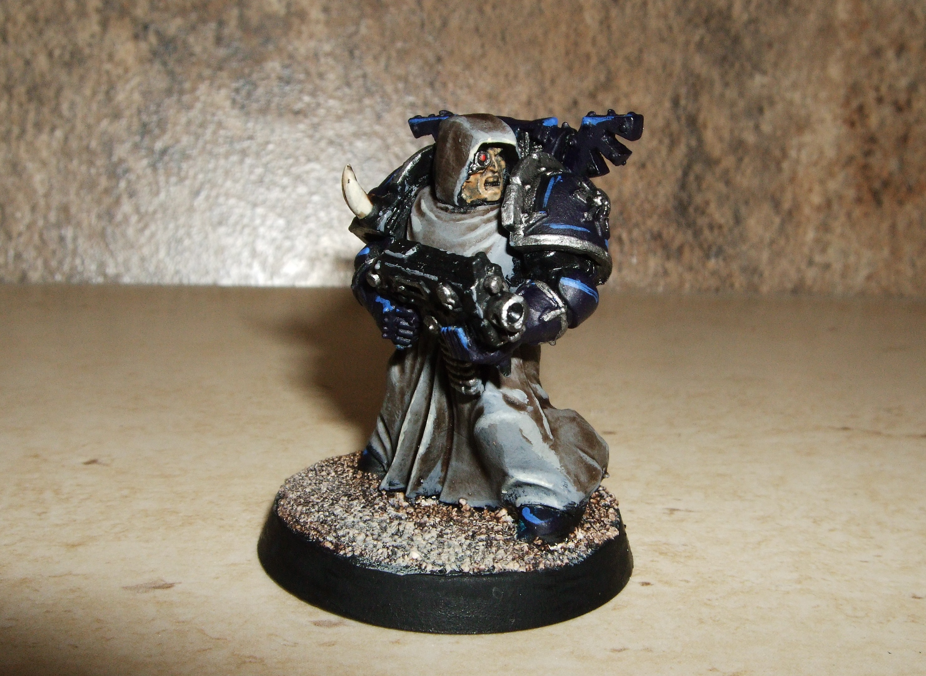 I've had this metal Cypher since about 1999, and he had a fairly decent paintjob, but recently, I saw the Dark Angels veterans box and though it was about time I made some Fallen Angels to accompany him into battle. It's only taken me 16 years to get around to it, but they're done and ready to go to war. I even gave Cypher some new arms while I was at it.