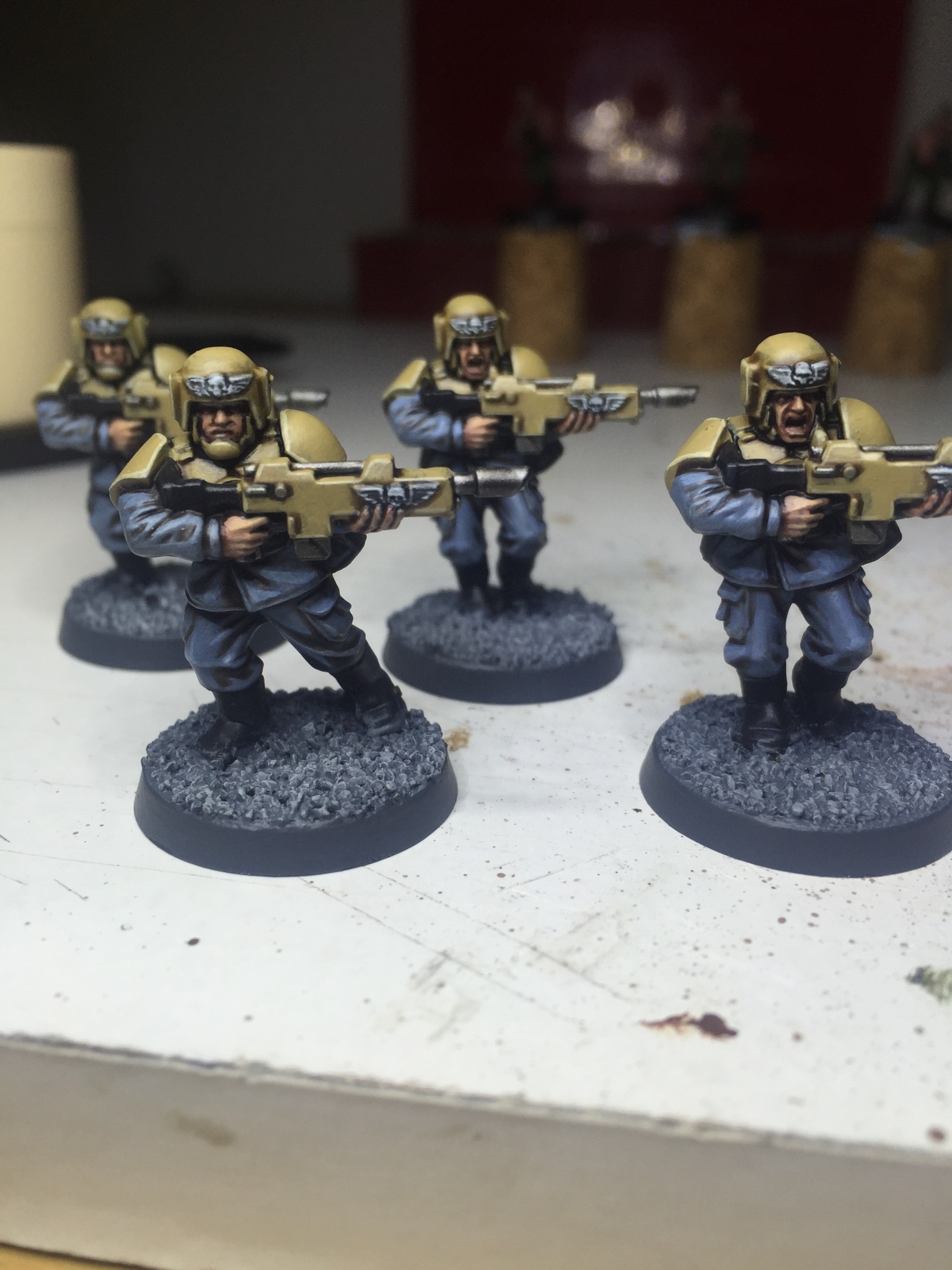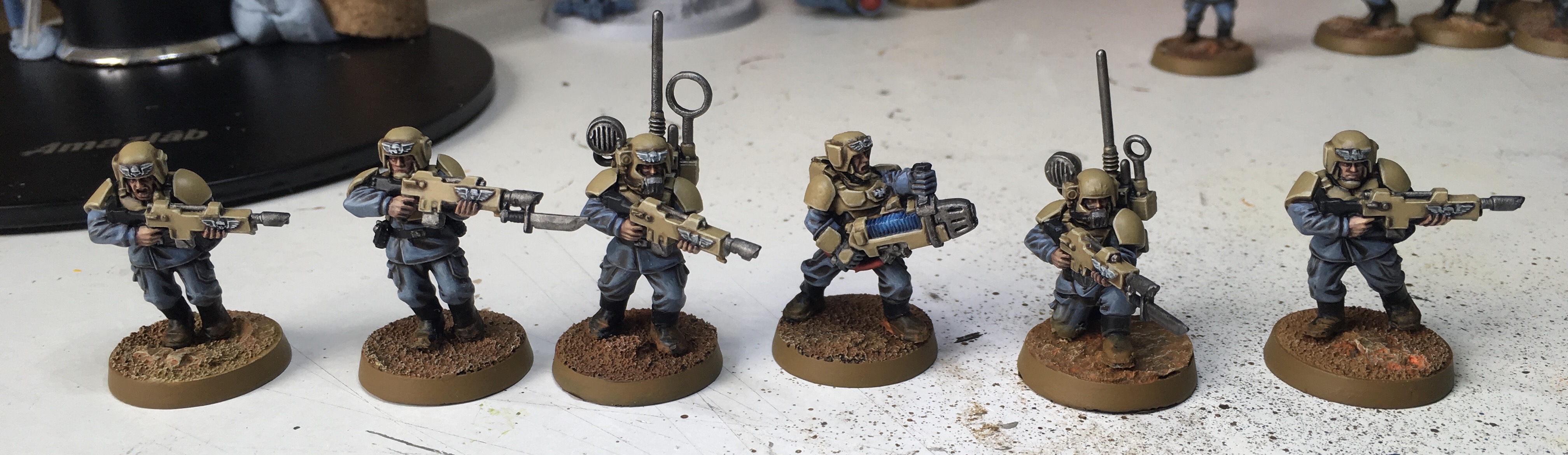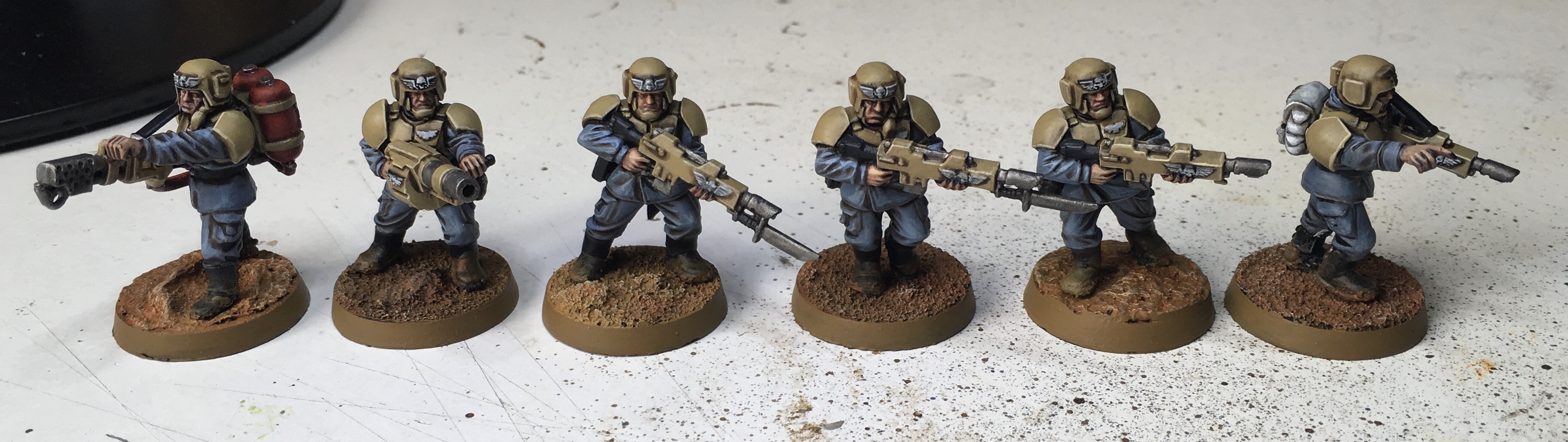 They look very good. Subtle shading on the tan colours and the uniform has nice colours to it too, there's more work in those models than you assume at first glance. It looks like a scheme that will suit any IG army once they are assembled en-masse.