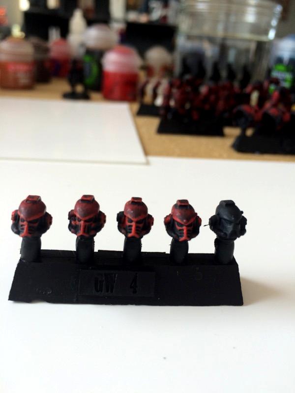 The mk.IV maximus armour was issued to the warmaster's legions first and was largely adopted by the word bearers legion. They are also more manoeuvrable and mobile than the older mk.II & mk.III variants, ideal for airborne drop squads.