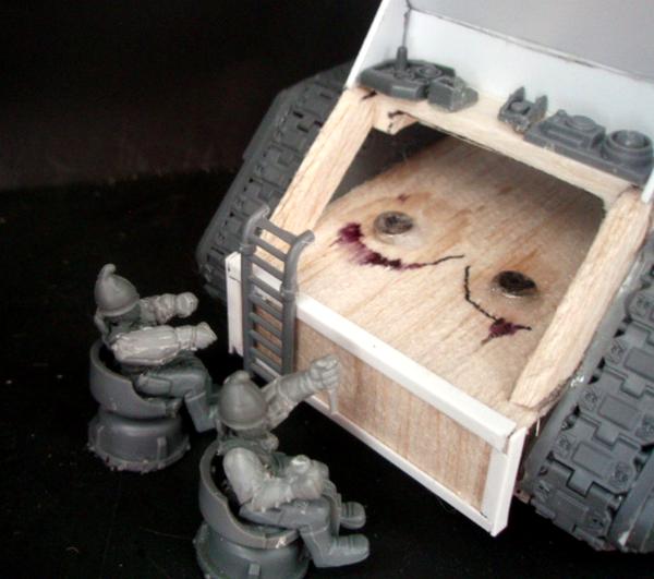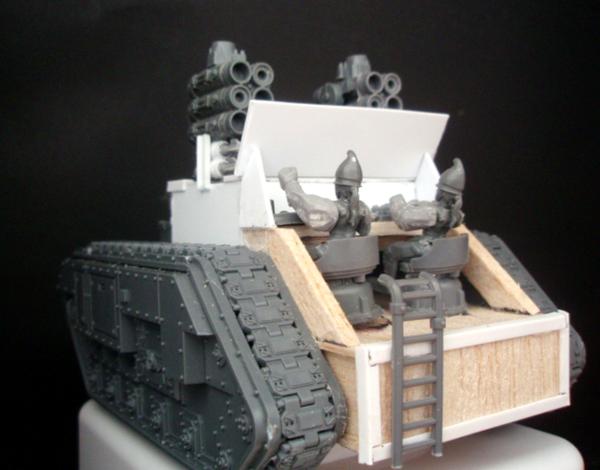 Hey all, I just completed building the first of two wyverns for my Sister's of Steel and just wanted to share. I bought the chimera sides cheap, then used my bits and such to build it up. The two crewmembers are a bodge up from Sentinel pilots and my amazons. Each is magnetized so can be taken off as Hull Points. The mortar launcher is a couple of really old chaos missile pods (I think) and it does the job although isn't perfect. I think the feed chains were the hardest part and look eh, but whatever. I've started the second, but it is in the early stages. Anyway, not bad for under a ten spot. Let me know what you think.