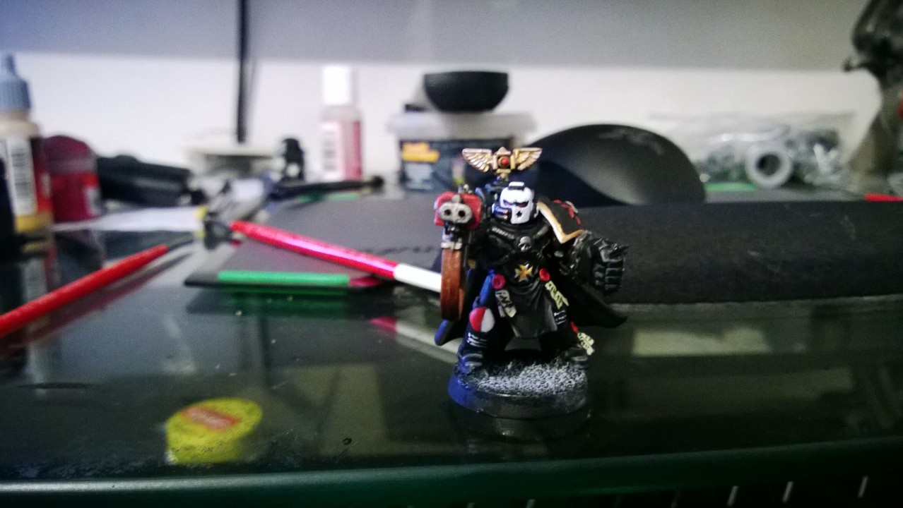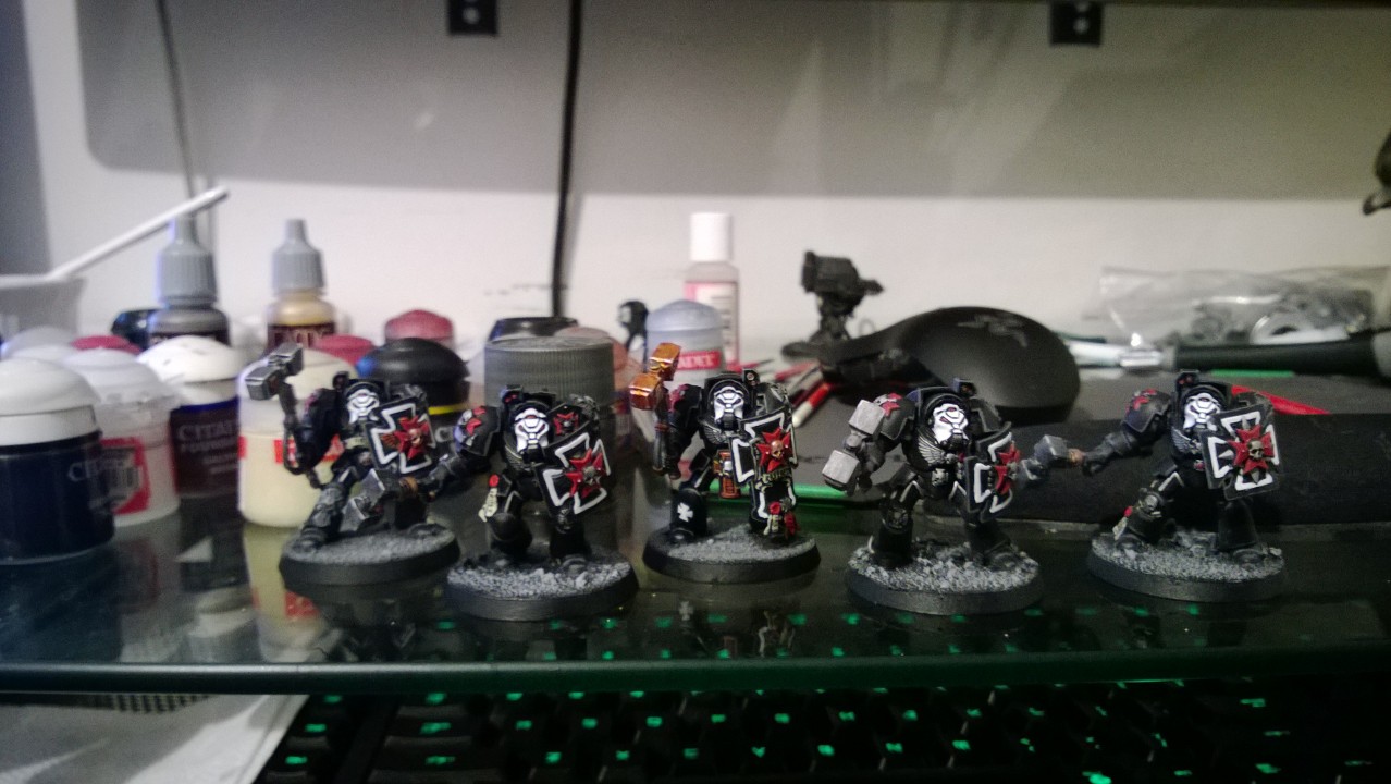 So, my color scheme is rather simple with my Templar. My Sword Brethren, Sword Brethren Terminators, and Castellans all bear white helms. The black tabards are in reference to the death of their Marshal at the hands of a chapter who while fighting alongside the Templar, turned traitor and killed the Marshal and 80% of his honor guard.