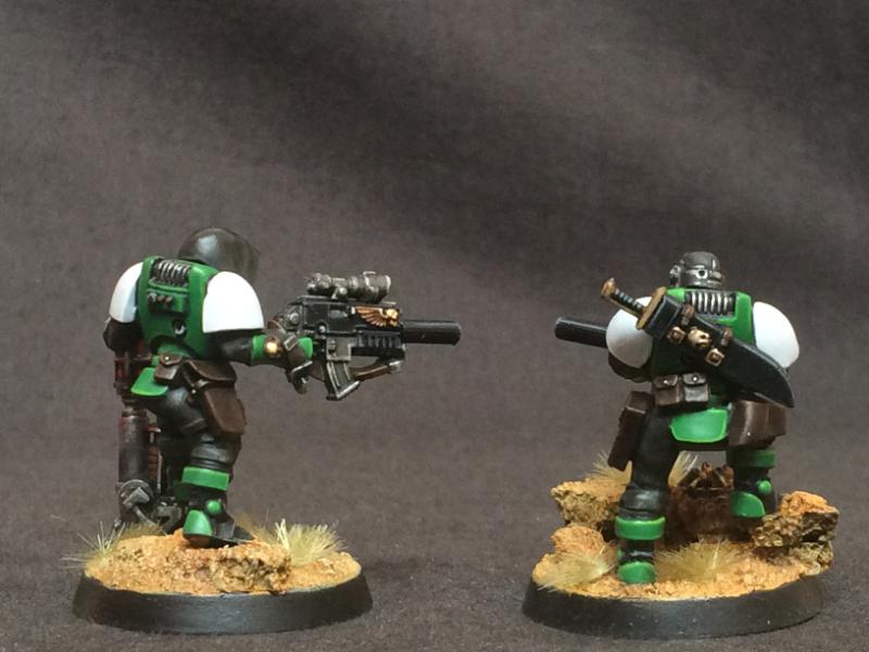 @Desubot - I think that may be one of the problems - I picked black trousers as I wanted to offset the vibrancy of the green and I thought it made more sense in terms of camouflage. Considering the white pauldrons, I didn't want to go overboard with white trouser as you see on GW's examples. I wasn't too keen on a brown either, but in hindsight perhaps that would have been better... Thanks for the input in any case.