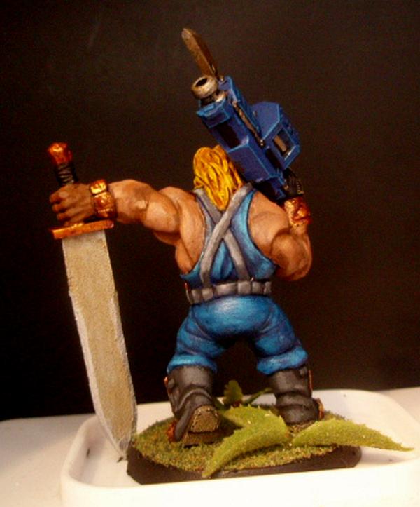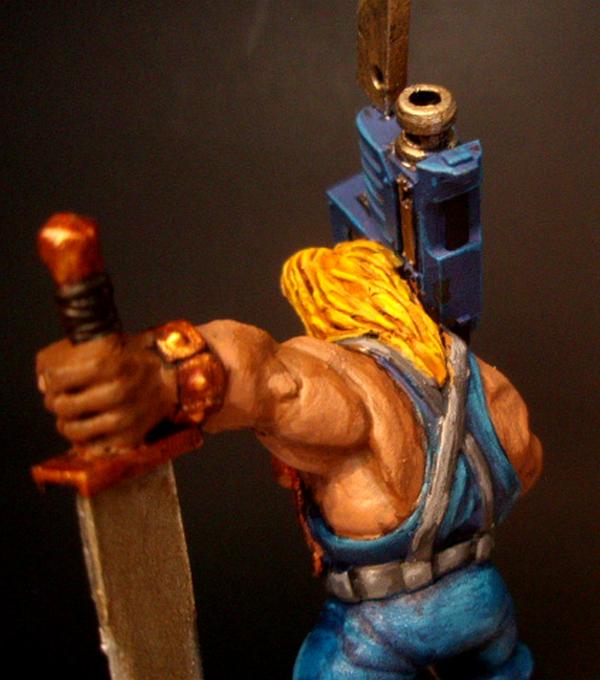 This makes me happy, haha. I love the makeup, and the fact her face is still VERY butch. Pants, skin, and hair look great too. My only criticisms would be the sword blade is a tad boring, don't know how you feel about freehand but something could probably go there. And get that winged skull on the side of the gun, looks like you forgot it. Very fun mini besides.