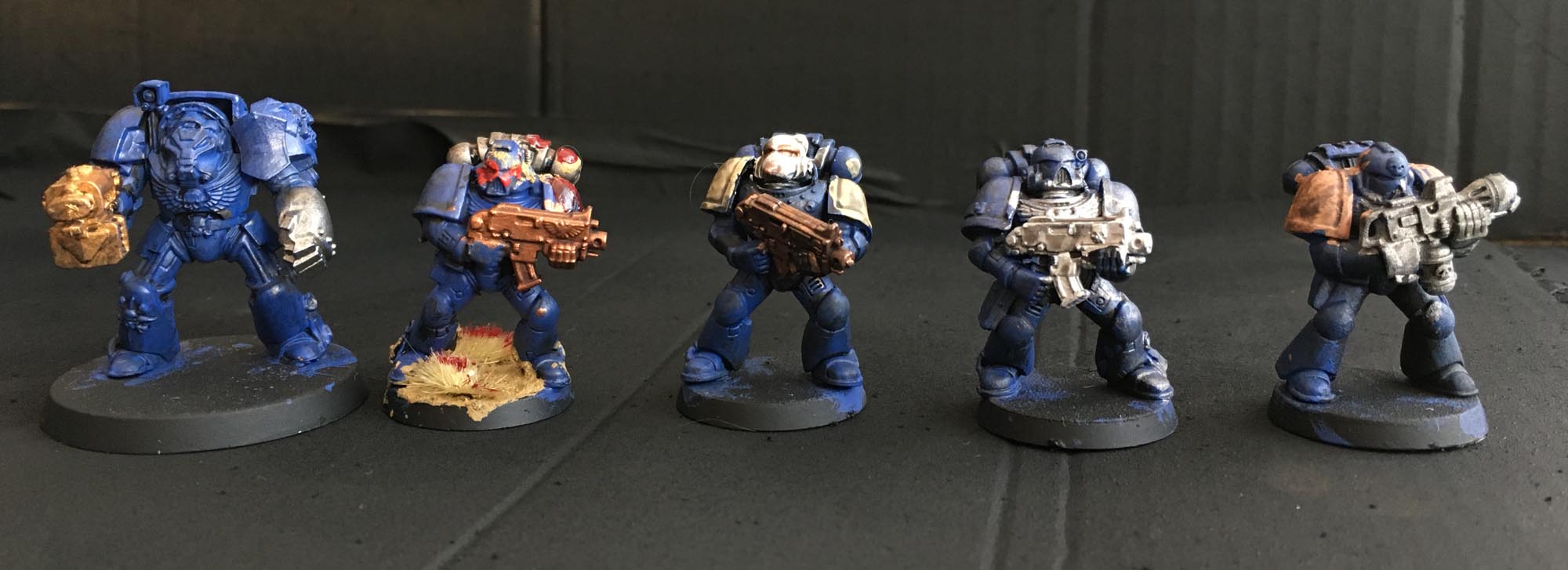 I decided to have another go to see if I could get my 7yo son off of the video games and TV. It works for small periods of time and I'll post his efforts too. He wanted to paint the 'Blue spacemen' ( Ultramarines ) and I had to paint 'baddies'