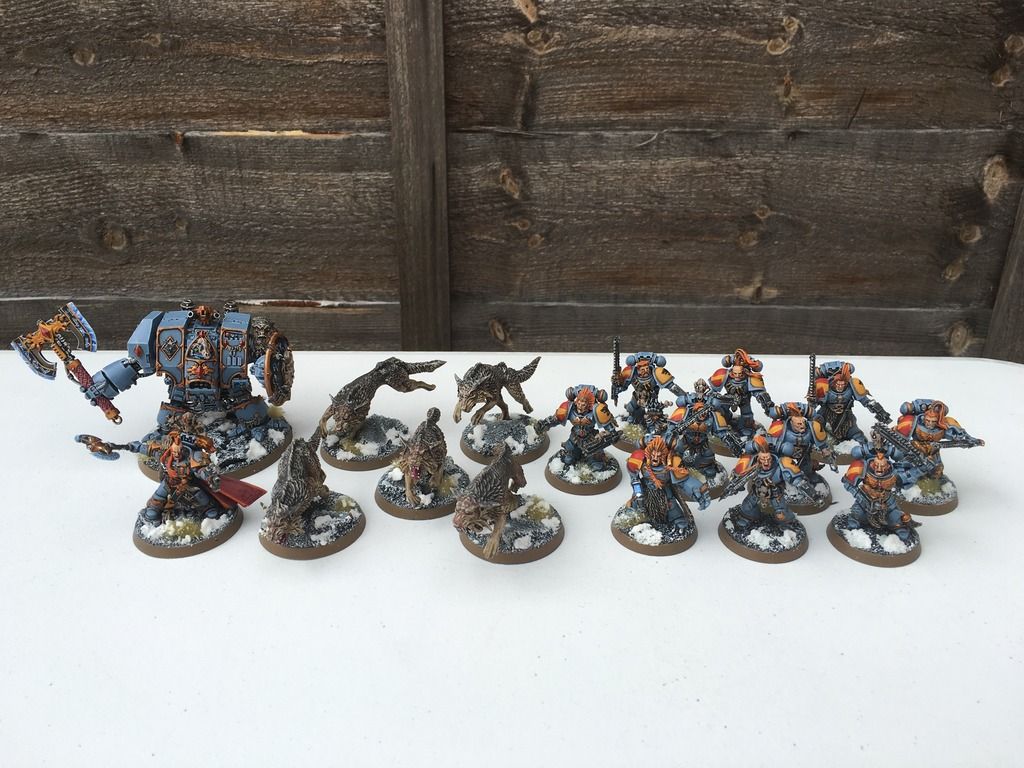 I realised that I never got around to finishing off their lenses and I ,ight add snow to the bases like the wolves but havent decided yet. Going to try and get the Centurions, Calgar and maybe a tactical squad finished in the next couple of weeks.
