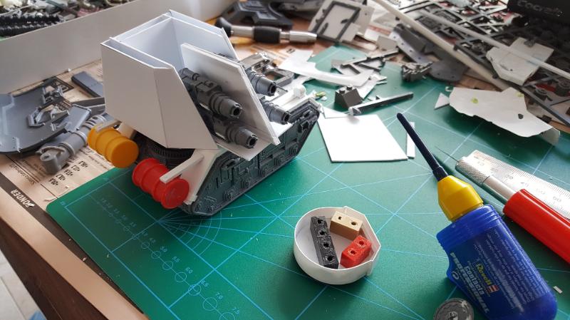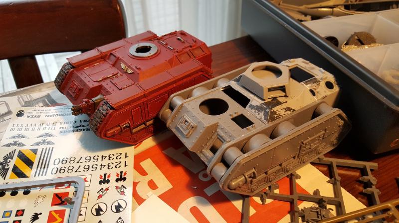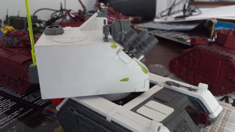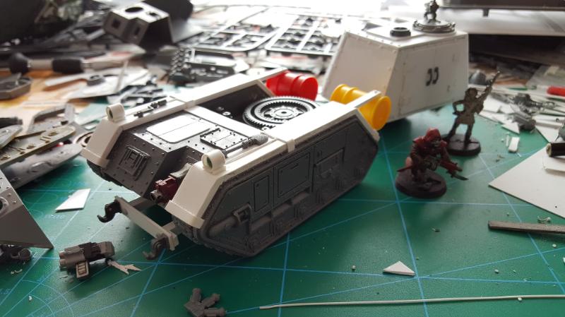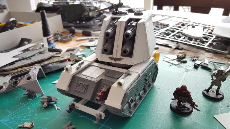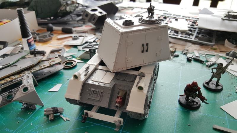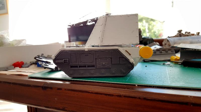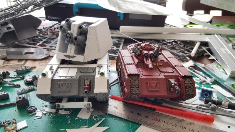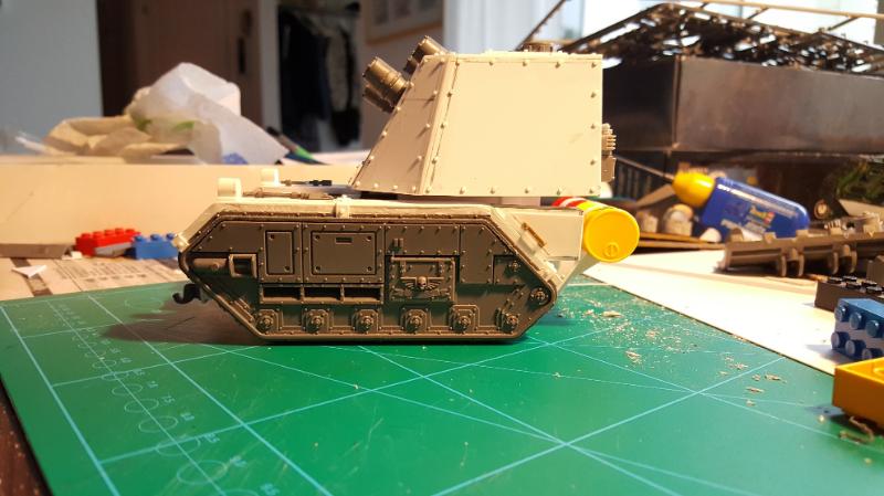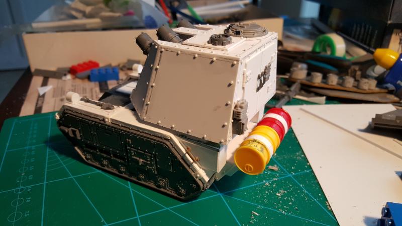 Bit late of an reply but yeah I agree that it turned out a bit big and next time im gonna make another Wywern I will try to lower the turret. I also decided to follow the advice given to make the rear longer but that will take some days to complete as im converting another Chimera and starting on a bashed up Baneblade but I finished the riveting on the tank/turret along with some bitz.