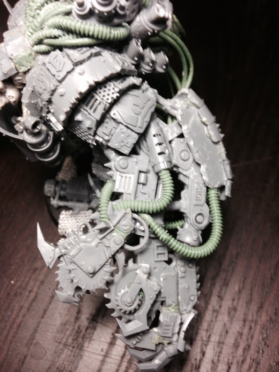 This is really just all a bunch of various Ork buzz saw and klaw bits put together. Shoulder carapace is made up of the Deff Dredd shoulders.