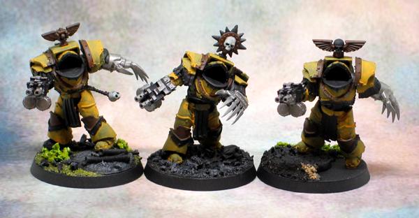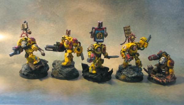 I really like the yellow and the weathering effects looks very good indeed. I think it's often difficult to pose Space Marines in ways that look natural, especially Terminators, but the posing looks real natural on these so well done there. Some decent conversions using a good variety of 40k and Heresy bits. Consider me very envious of your painting skills.