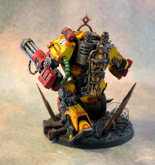 and I felt an urge to use the bits to build a Contemptor Dreadnought. I added a lot of bits and pieces, and had some problems with misshapen resin.