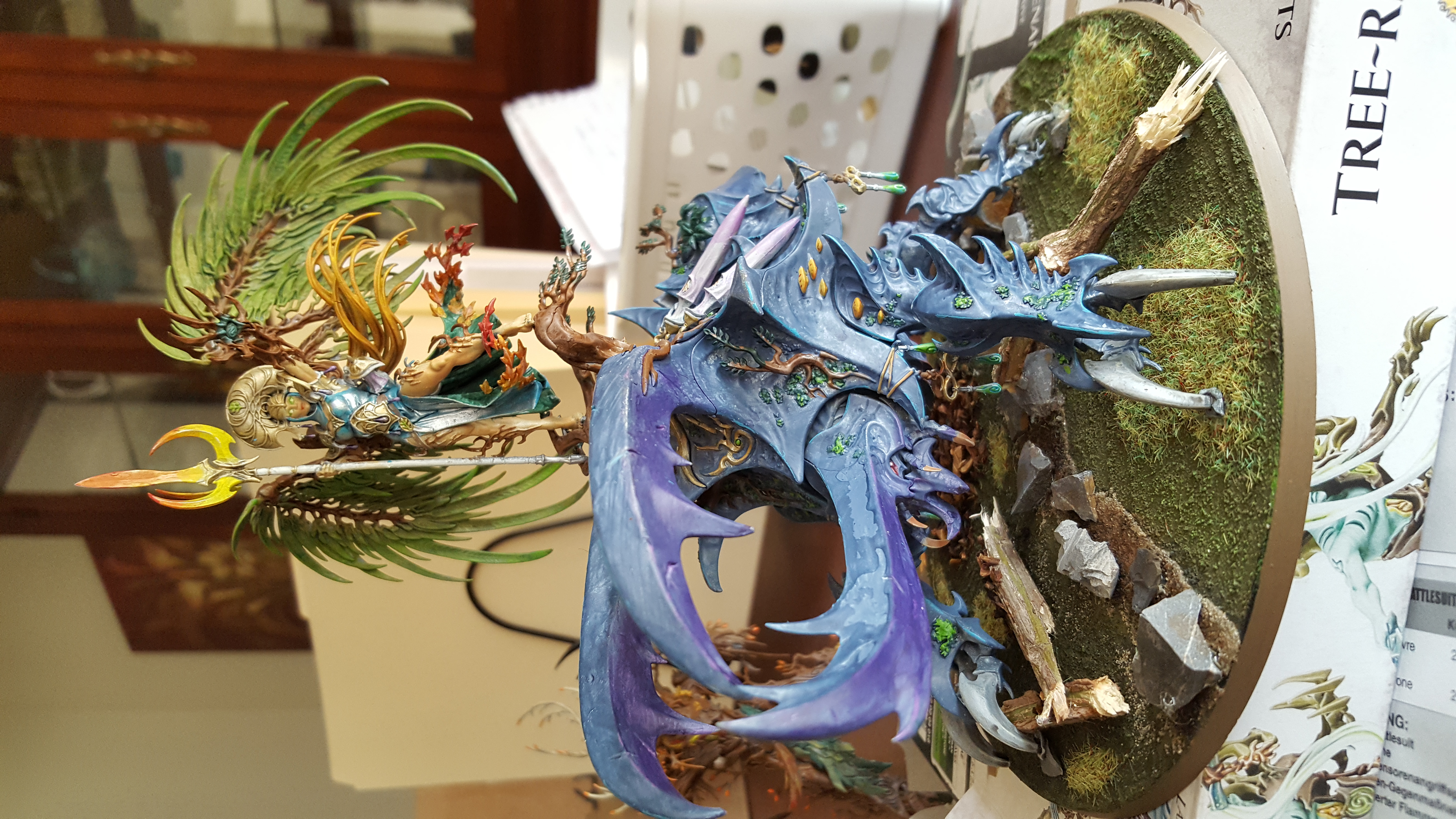 Looking good! If I were to nitpick, it looks like a couple small spots here/there could use a little more attention, like alarielle's legs, but overall I think it's great! The beatle's eye came out especially well. But where's the base? :( such a beautiful centerpiece model surely needs an equally beautiful base!