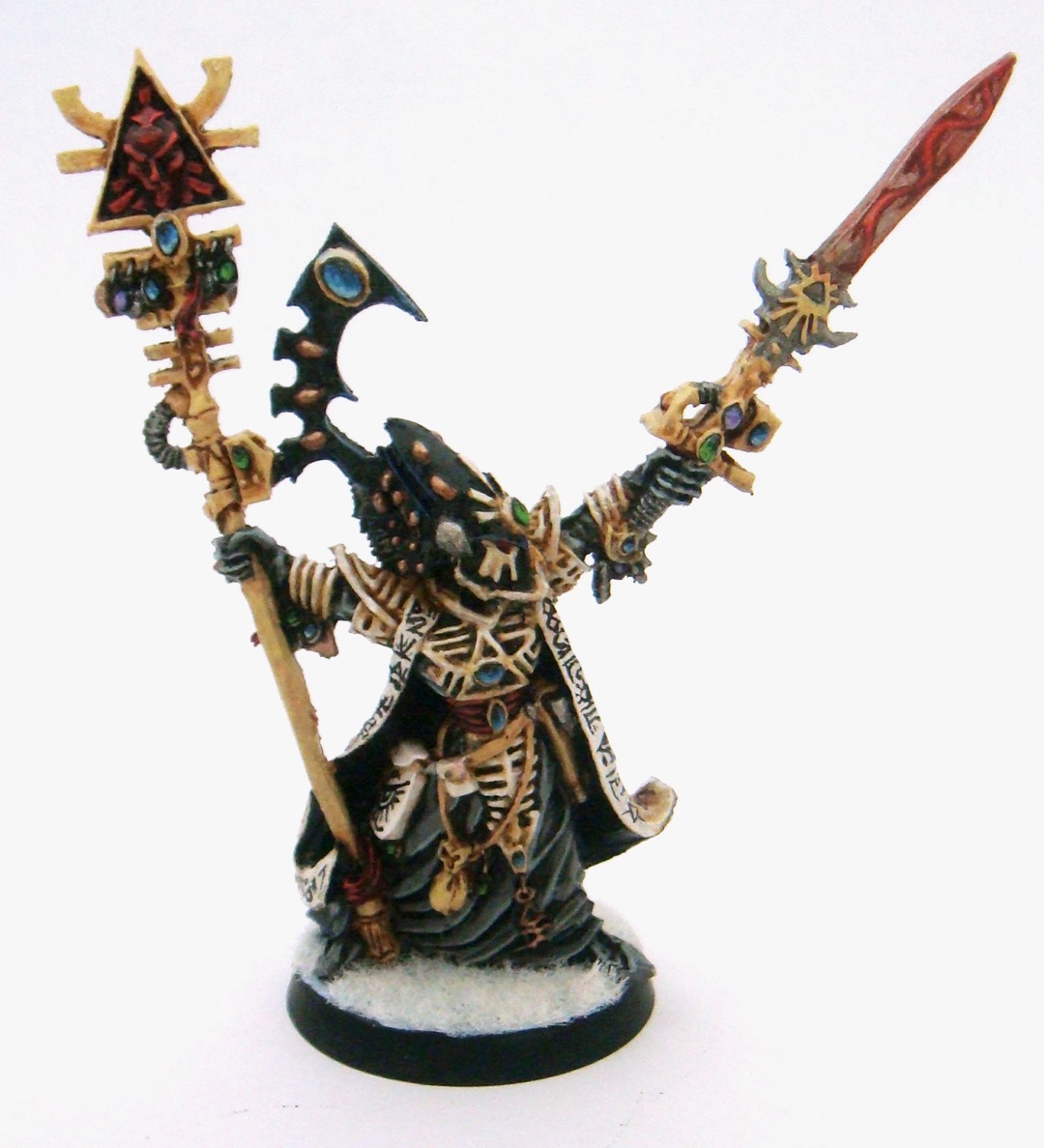 I will agree now that I go back that Baharroth is the PL I like the least, and I think he is the oldest of them. I was trying to get it to be a kind of shimmery metallic technicolor, but I used a pearlescent white as the base. If a new model ever comes out for him, I will have to see how a dark silver will handle the multiple washes instead. Or maybe just do very subtle edge highlighting.