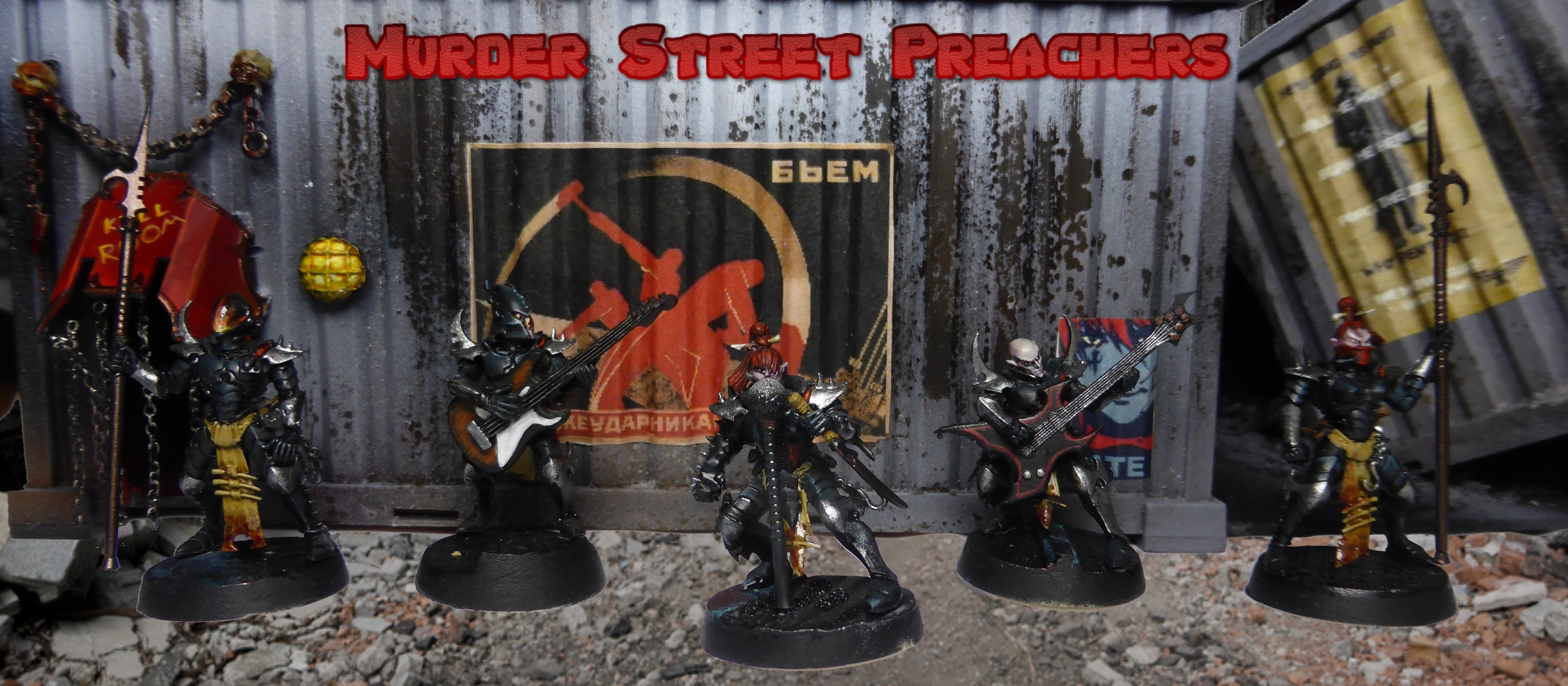 Those are great, years ago I did something similar with the old metal wyches and the instruments were made of plasticard. Never came up with a band name come to think of it...