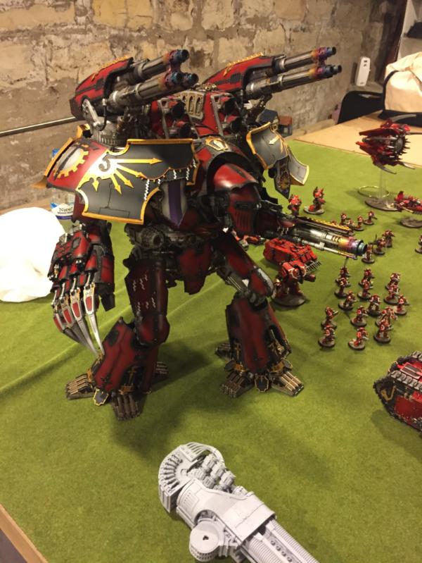 Yeah, i played a 30 mega-battle where everone got to bring 2000 points, and i ended up with Maun and two of my Volkites left after turn 2 (we played 12 turns...) although i did still have a drop pod with my Mor Deythan left (they killed that anoying Zardu Layak guy, from the Word Bearers) befor getting ImperialKnight-ed. Maun made it to the end, helped take down a few tanks (his stratos-vox is awesome) but it made me sad to see the XIX legion reduced to only its commander while one of my "allies" (imperial fists  ) had his intire army, minus one predator and half a breacher squad, still intact.