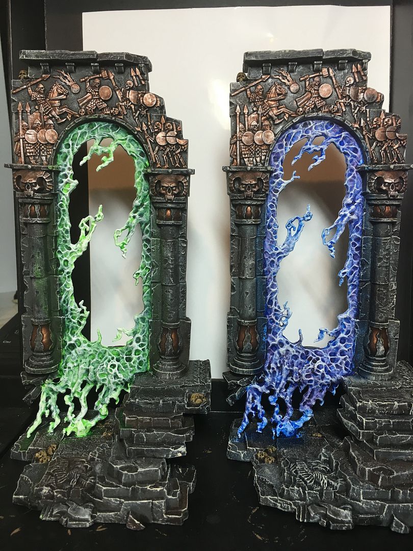 As I am going through chemotherapy at the moment, my sensitivity in my hands can be affected and it can be difficult to concentrate for long periodsb but I'm determined to get back to painitng and am really tempted to try and get an armies on parade board done. I probably wont be able to paint a new army in time but could maybe add a couple of models/units to any of the above. If anyone has got any ideas for a board based on the armies above then please let me know. I did get the scenery buzz and painted up these realmgates yesterday and am currently working on a numinous occulum which I could possibly integrate into a board: