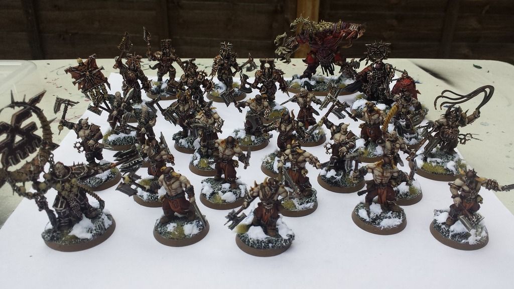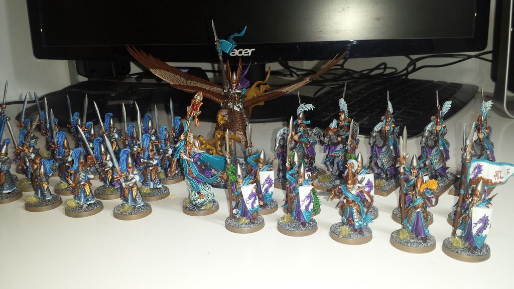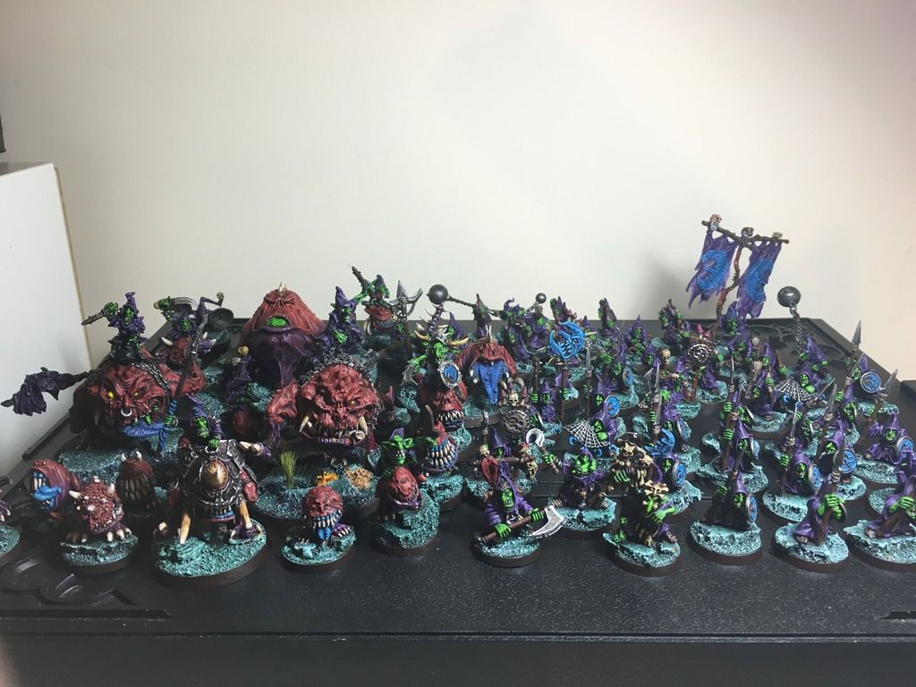 AOS plog elsewhere and have the ambitious goal of having a small force built and painted for every faction out there. I had painted up a decent sized Dark Elf, Ogre, Empire and Chaos army during the endtimes as well as a couple of other models before Sigmar launched and was making pretty good progress by getting the following forces painted up by about March time:
