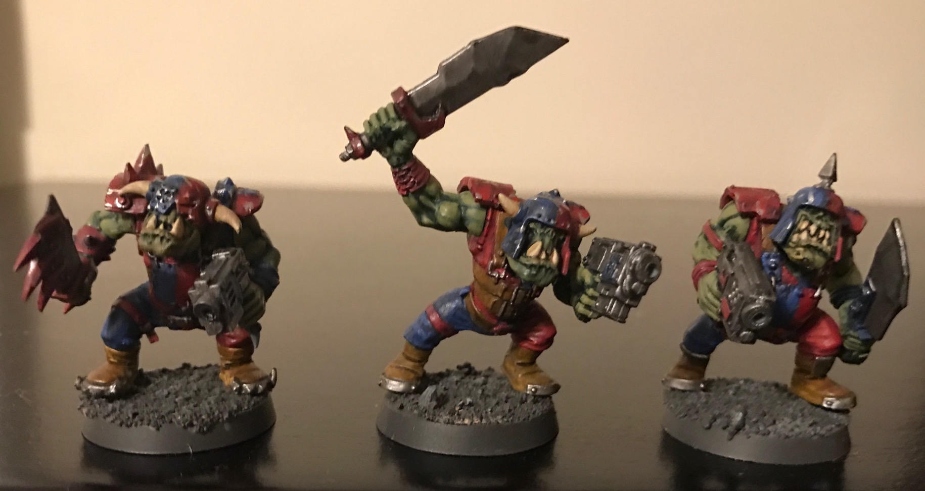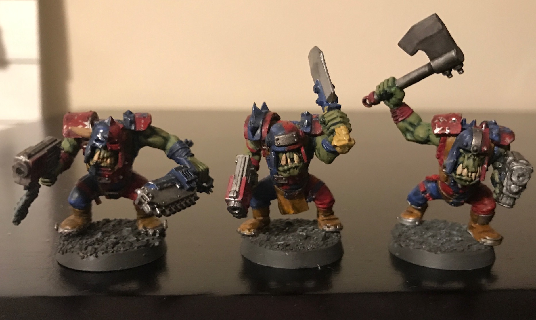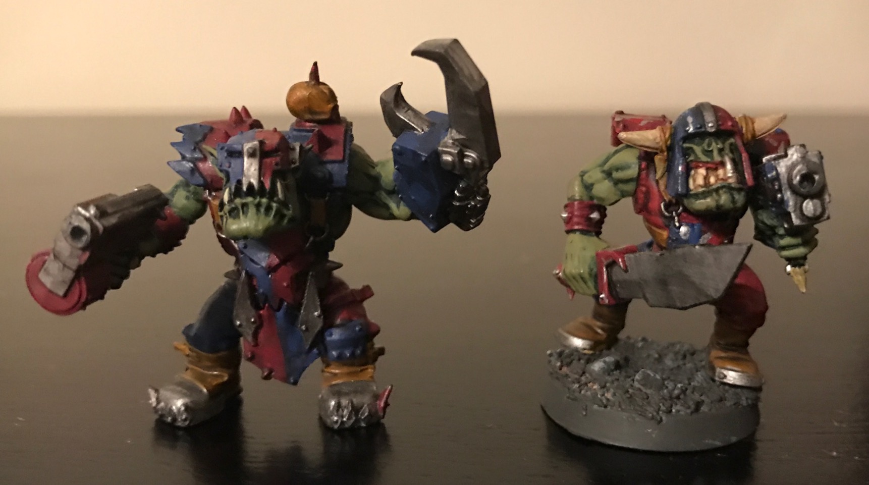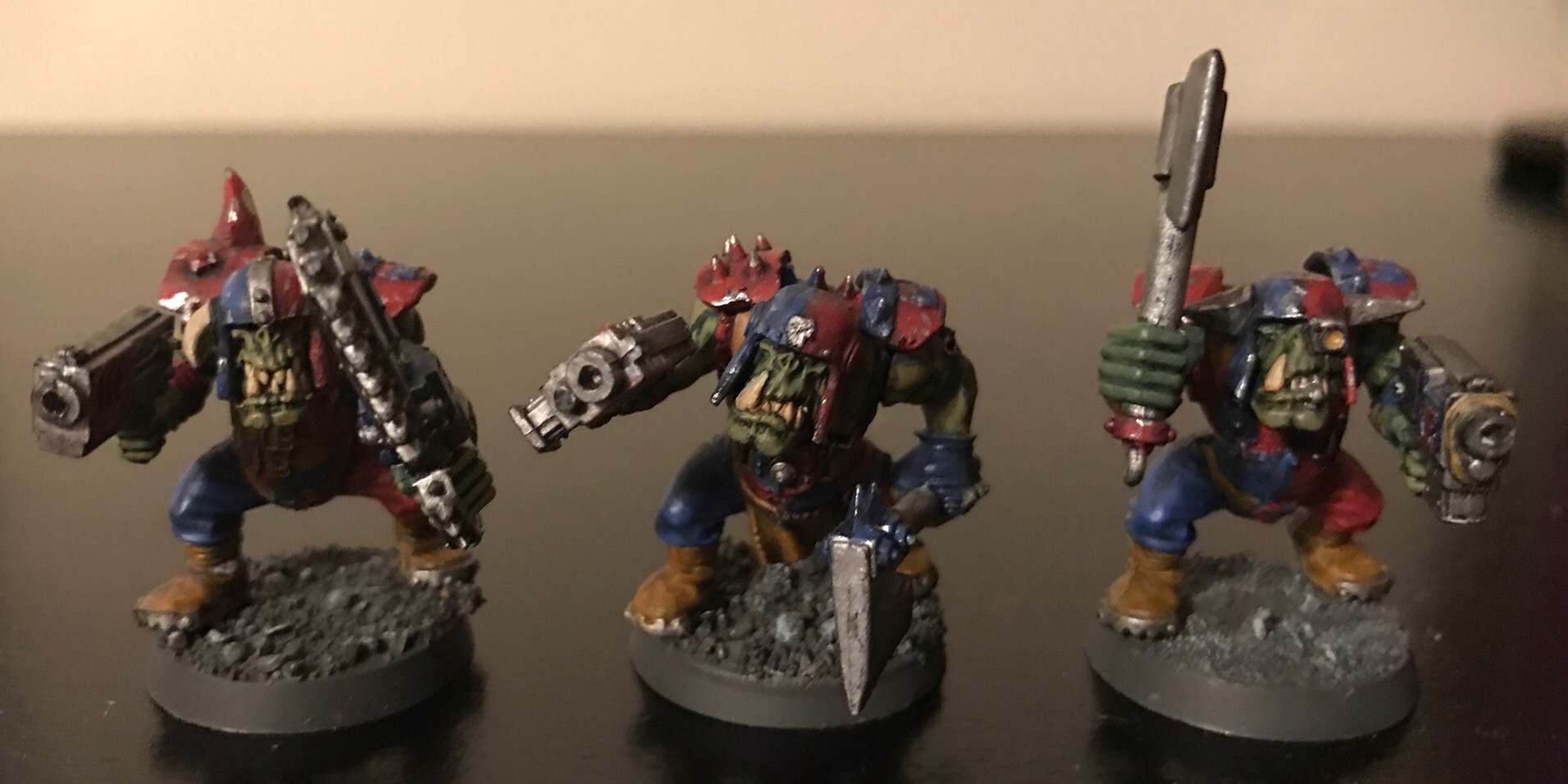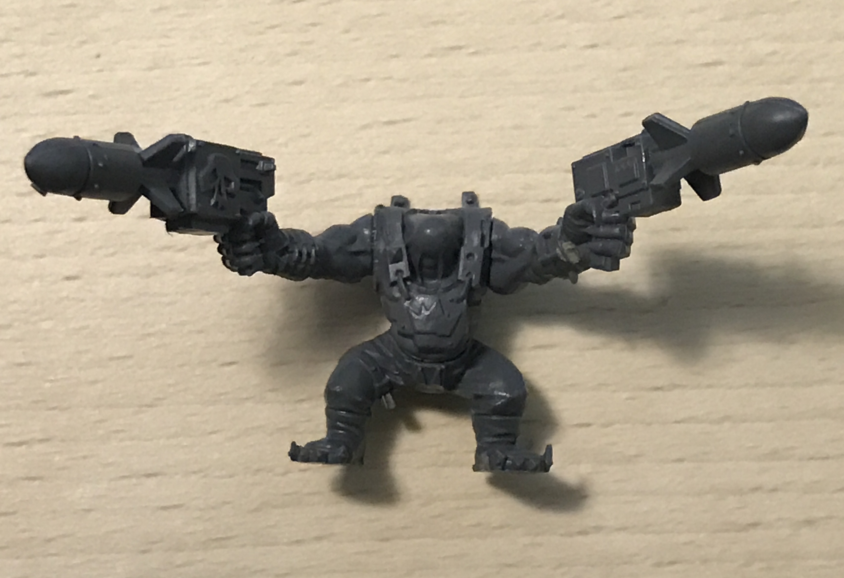 So after about a 3 year break from the game. Kill Team comes out. And holy crap if I didn't eat it up box and all. I have always been a fan of smaller point games and I love how you can take a squad and use them as individual characters. You don't have to worry about squad cohesion. So I pulled out all my ork gitz and gibbinz and started working on a list. As stated in the title I will be using some existing models from my Da Brazen Klawz army. Mainly models from my 'Ard Boyz squad. I had a big shoota in the squad originally but wanted to go with a rokkit launcha for the kill team. So today I got the ol' bone saw and exacto knives out and started chopping up some bits. This is the start of my rokkit boy. [b]