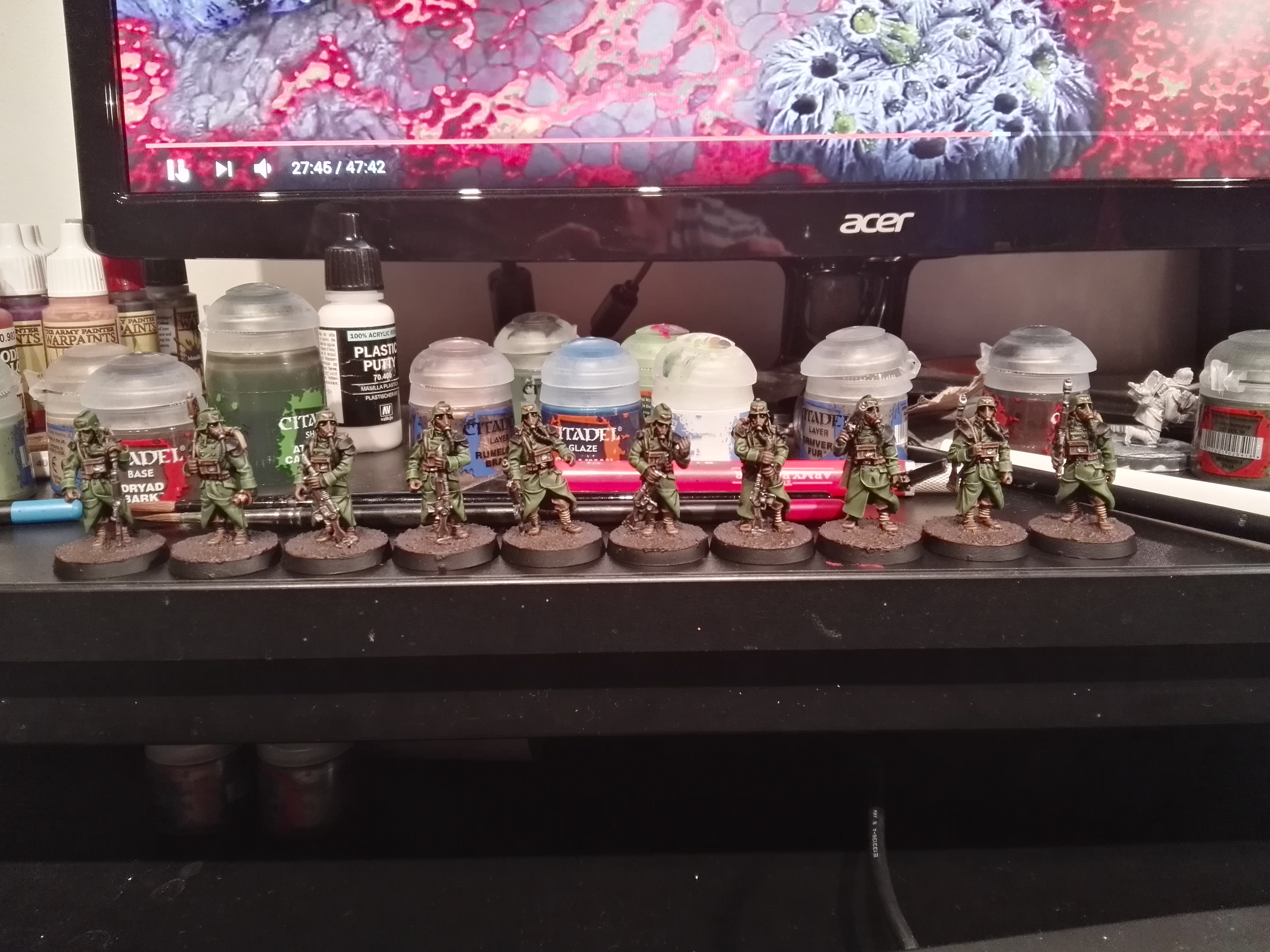 Here is the latest painting from me! A death korps of krieg squad. Really fun models to paint, since they´ve a lot of details and character.