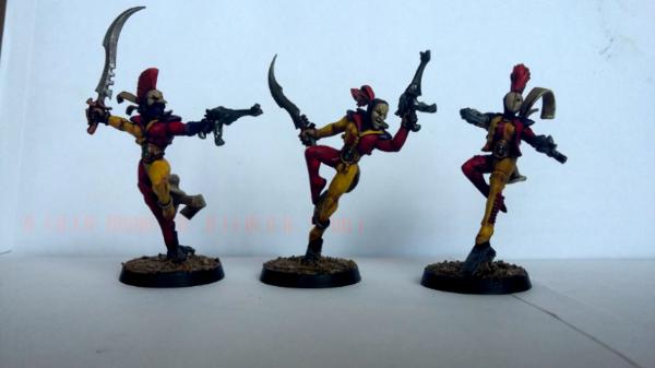 I think this is a scheme that compromises nicely between the look of the Harlequins and the time it would take me to paint a whole army.