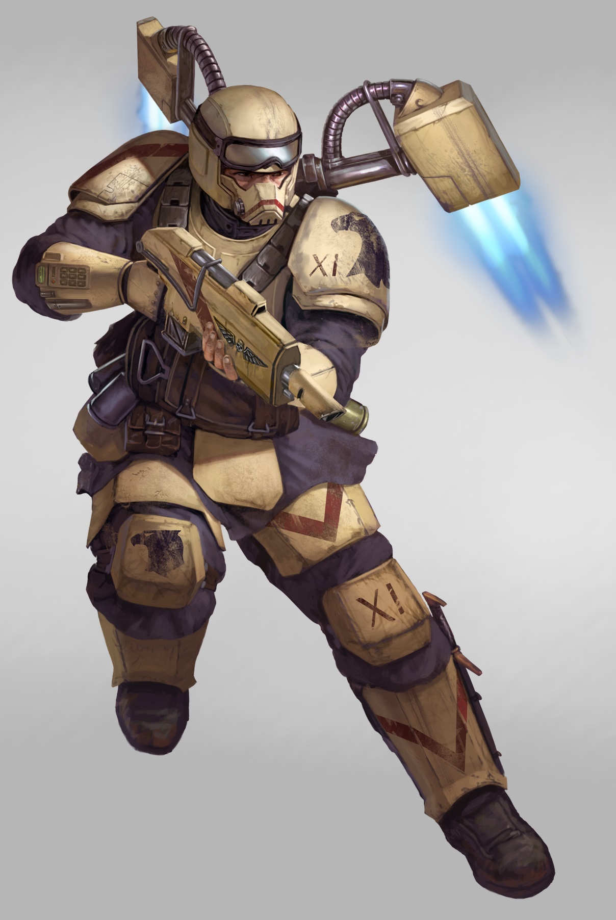 lol. Basically do I go with the Harakoni tan armor or the Dark Charcoal Gray Armor of the ODST. Will be using the Cadian Models with armored legs, Respirator Heads, and Grav-Chutes for my infantry.