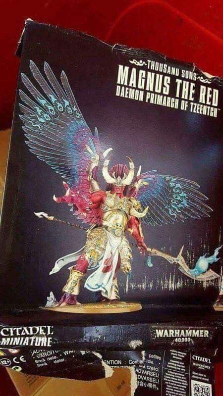 I'm gonna drop here that it looks like there's a second model to the right of the box that you can see the edge of the base for and a bit of a foot. Could it be a Tzeentch Greater Daemon? Or could Magnus just be Alpharius? Just thought it was important enough to mention.