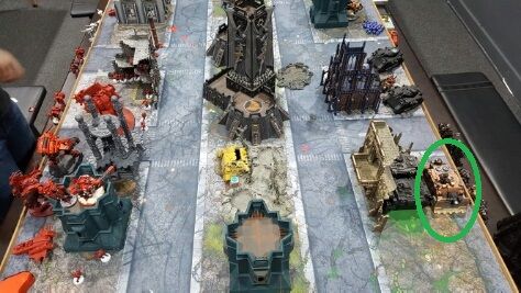 The half-painted vindicator inside the green circle is my warlord.