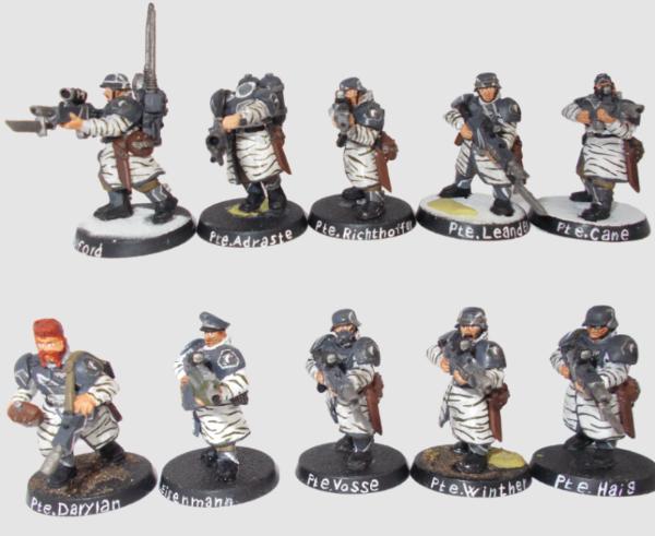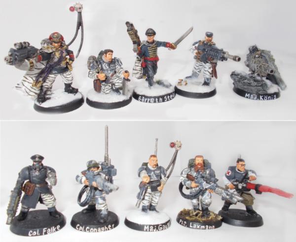 Top (left to right): Lord Commissar Blake Lionhearth, [CLASSIFIED], Commisar Garreth Steel, G/Sgt. Hans Walken, Maj. Erwin König