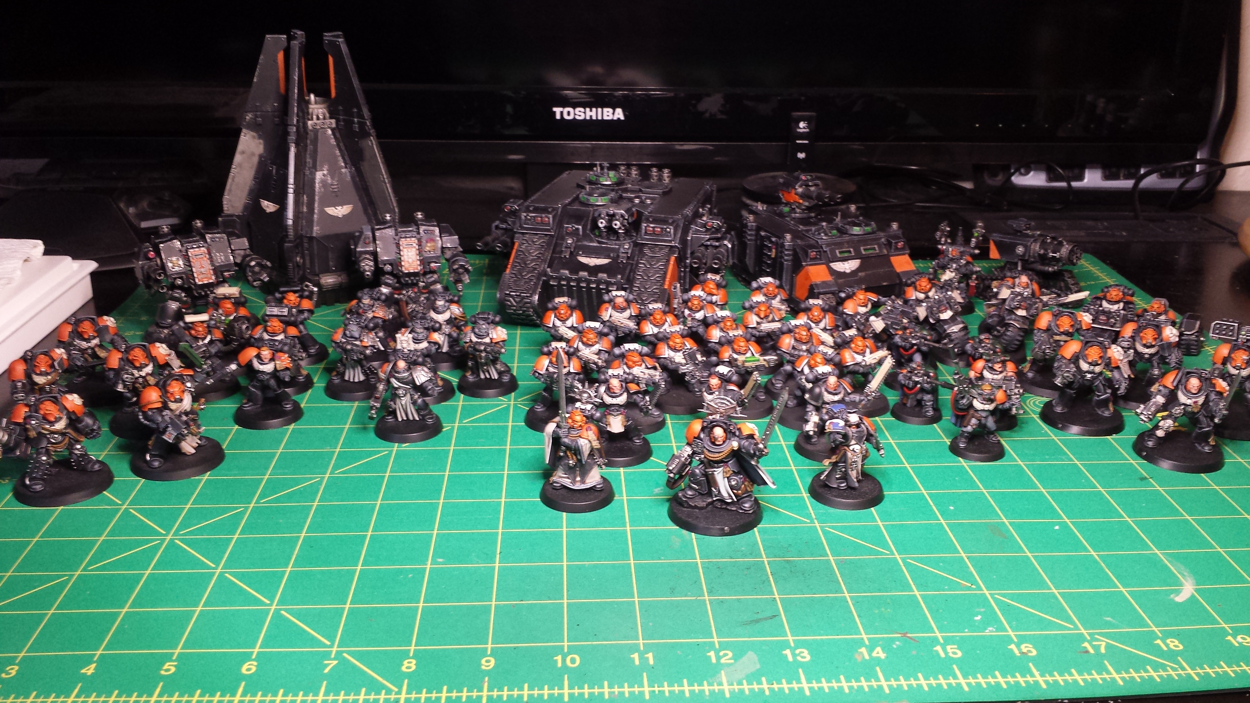 Your army is predominantly black and dark. with a secondary of red.