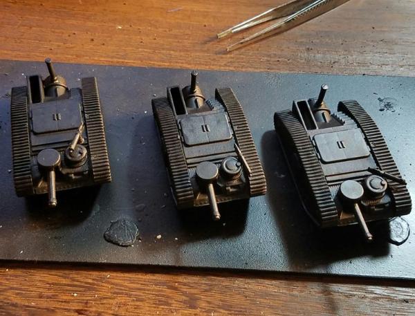 Here are three "elements" (models) that comprise a unit thus far, with treads and base coat details complete.