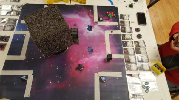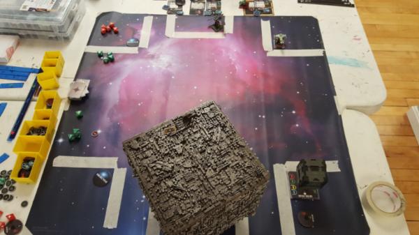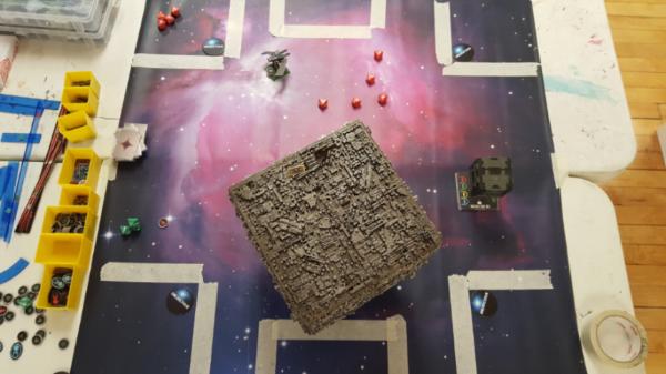 Victory! In the end Big Momma still had 2 hull, the Tac Cube had 6 left and again the Bounty was secure in the hanger.