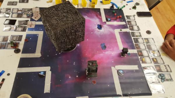 Victory! IIRC Big Momma lost her shields and took two damage to the hull. The Tac Cube only lost 3 shields to the mines.