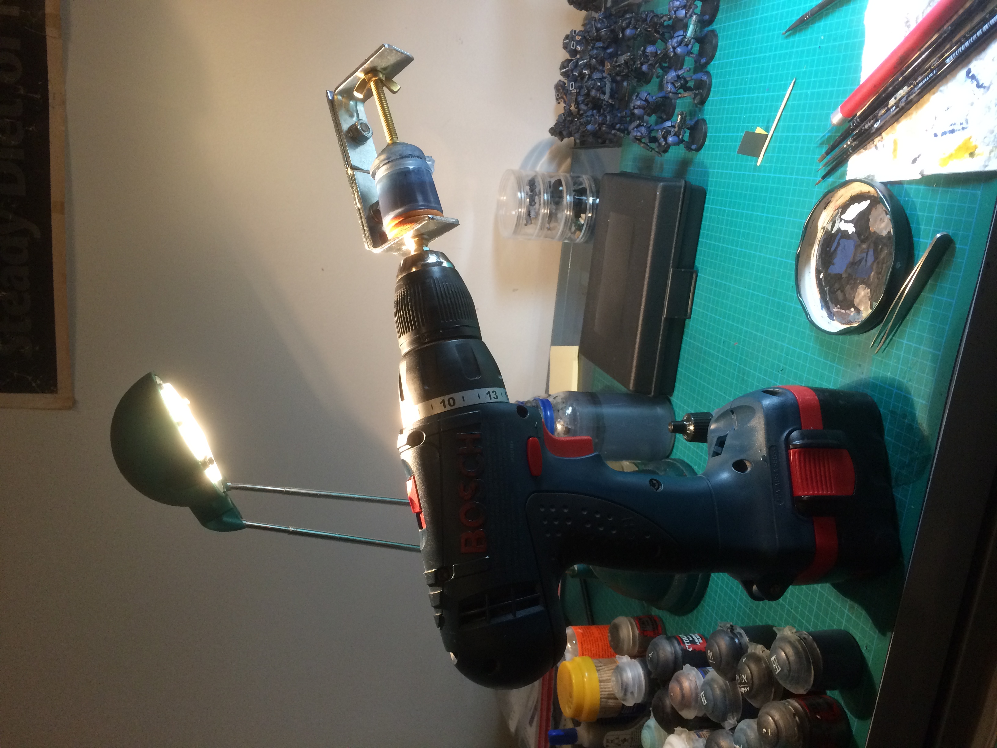 I have heard of guys using a drill to "spin' paints before. These paints I'm dealing with separate so stupbornly I doubt spinning them by hand would do any good. Dropper bottles could more easilly be rigged up to go "tighty" in a drill and not come open, but what about citadel pots...