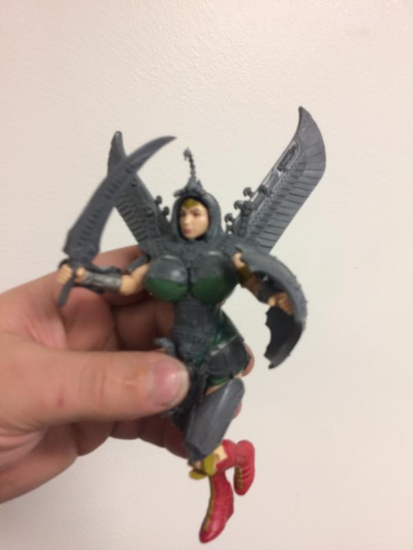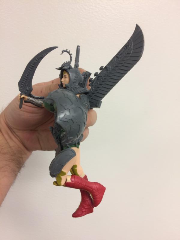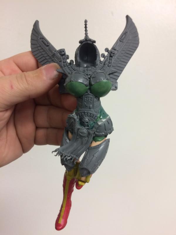 Nice conversion work! Looks good! I actually find the under action figure a little distracting...I think your demon needs to be beautiful...but not looks so normal human? If that makes sense. I'm sure you have more to do and painting etc so can see it might change a lot of the look. In any case, great work and thanks for sharing! (Maybe a picture next to another common model (a SM) for scale?)