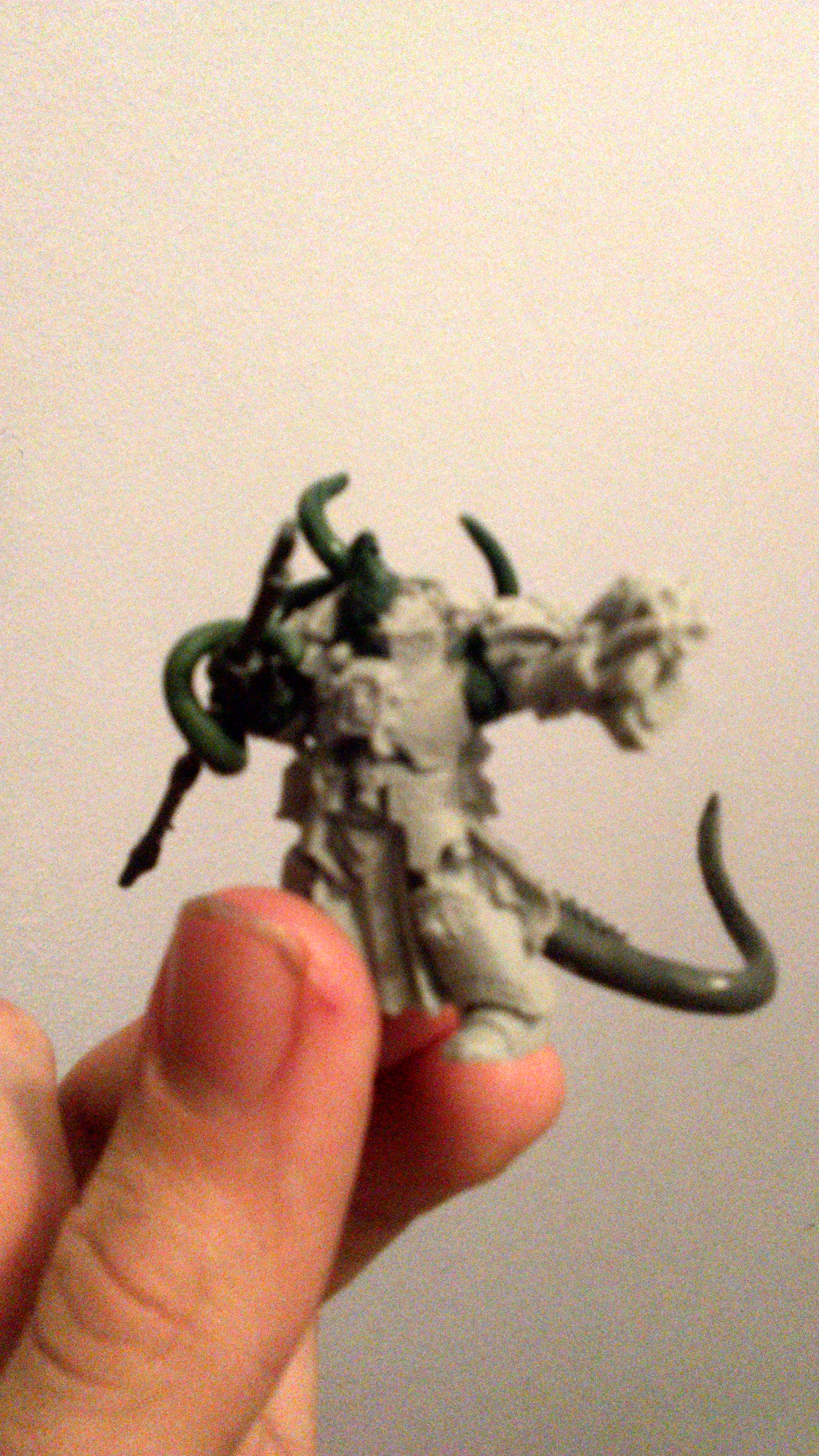 What I was thinking was to do a 'split' down the model, one half GK the other mutated and corrupted, to represent the split as the GK continues to fight corruption even after being touched by Slaanesh.