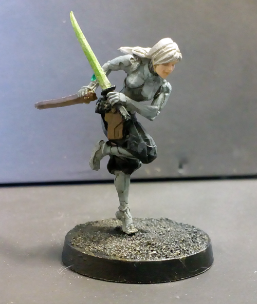 I love this one, the exclusive Yu Jing figure from Red Veil, the ninja with tactical bow, mainly very light grey. Pretty straight forward, with red on the katana sheaths to pop just a bit, the tactical bow is not as useful as a combi rifle but it is cheaper, and looks sweeter.
