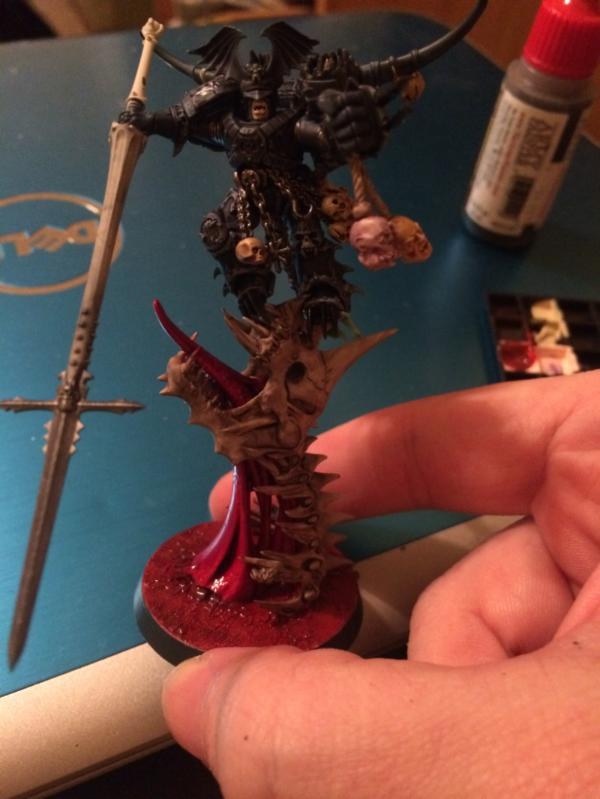 Almost done at this point other that finishing the weapon and some spots I missed. Doing a night lords army without some of that Tamiya clear red is not a life I'd want to live. The armor is mostly just drakehoff shade with a watered down black ink laid down first to bring out some crevices. Not sure yet how gory I want the weapon to get. I was considering trying the 'string glued to weapon and covered in blood' splatter effect but not sure f that would really mesh with how a lance would spray fluids. Might just go with caked on gore. Feel free to comment and critique.