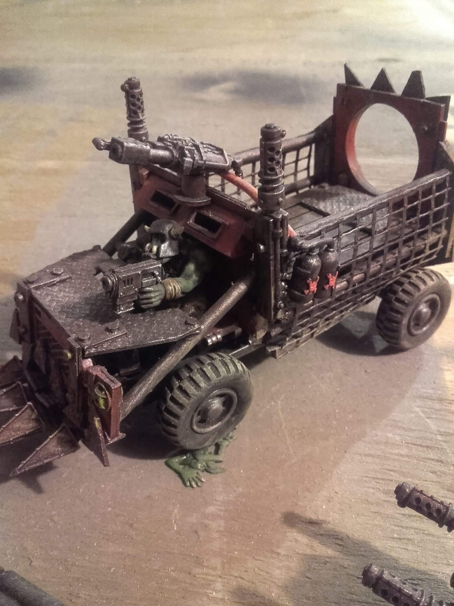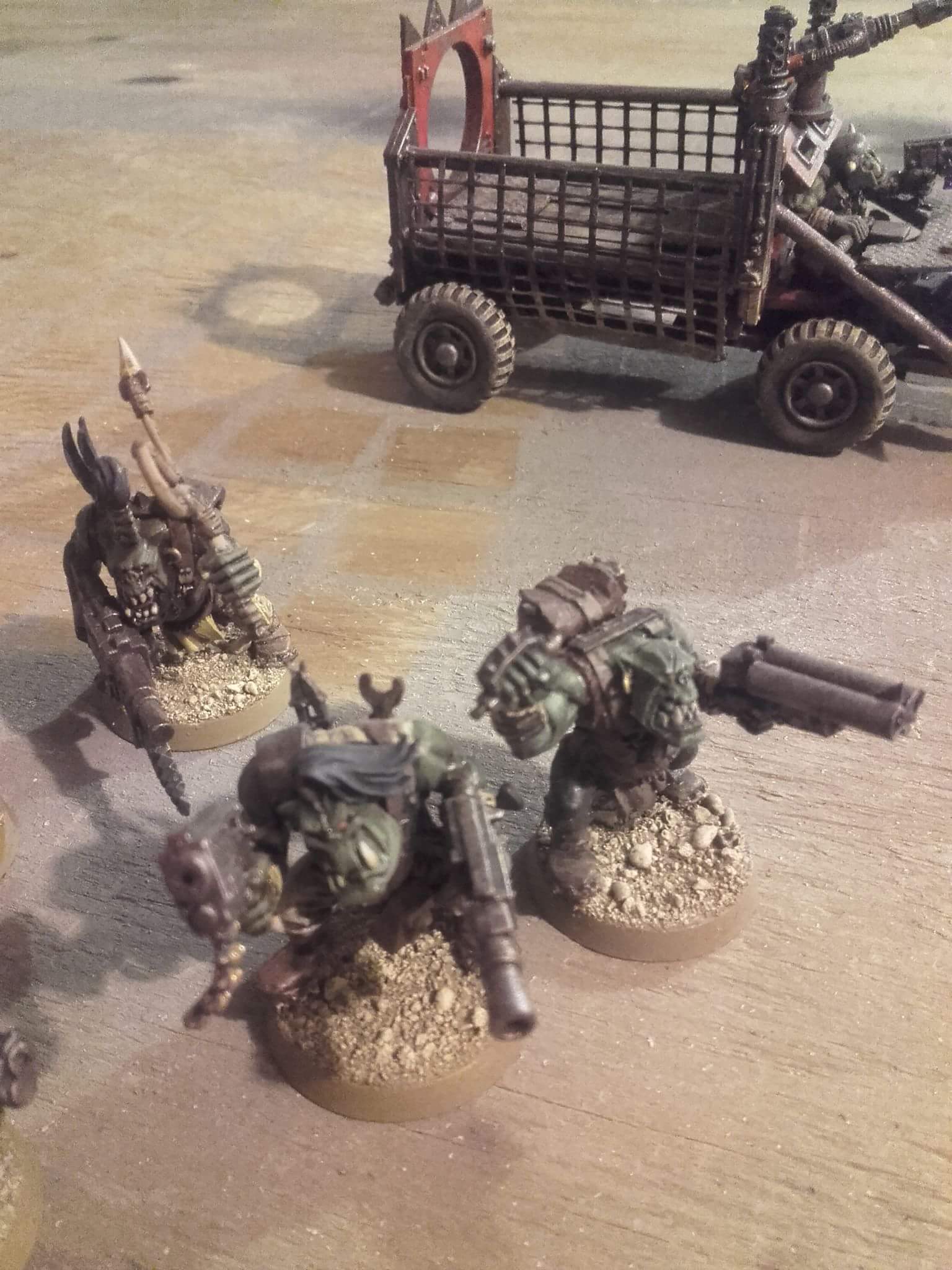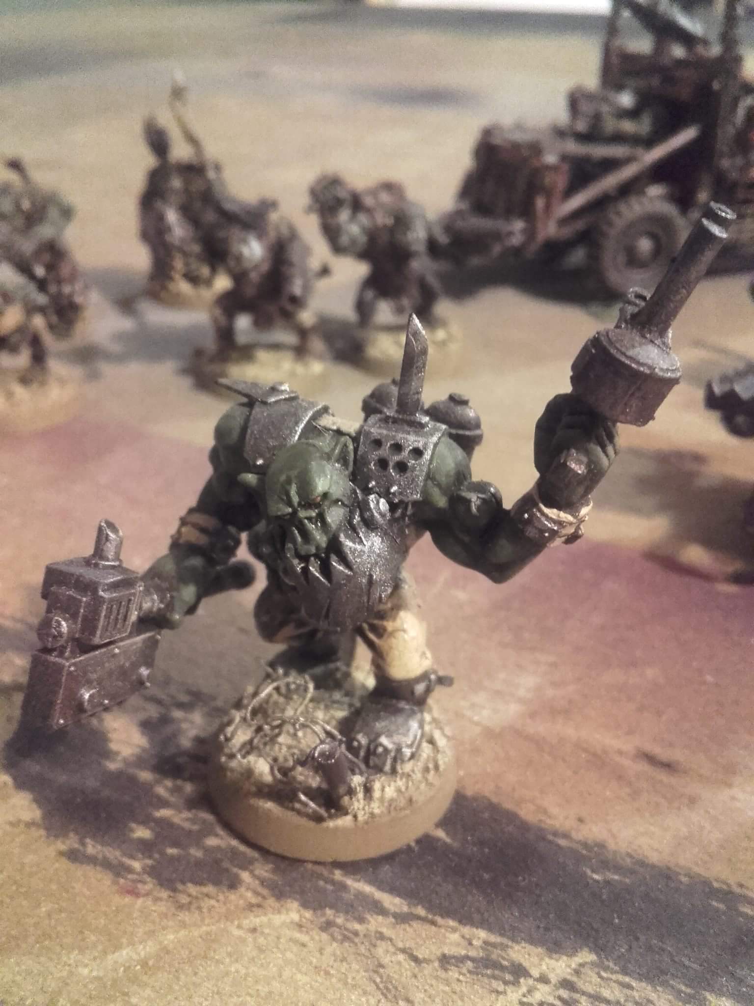 1 Mega armoured ork to be used as an warbozz with lucky stick. 2 Deffkopta's (the plastic second hands ones are preferable above the web only GW version) 1 Trukk, +1 box of boyz ( you might be able to get them cheap second hands or you could go for the Boyz + trukk box ) 2 cheap scratch build MEGA cannonz. 1 build looted wagon with boom gun. ( just any second hand lemmon russ or any other tank with a turret really + bits will do )