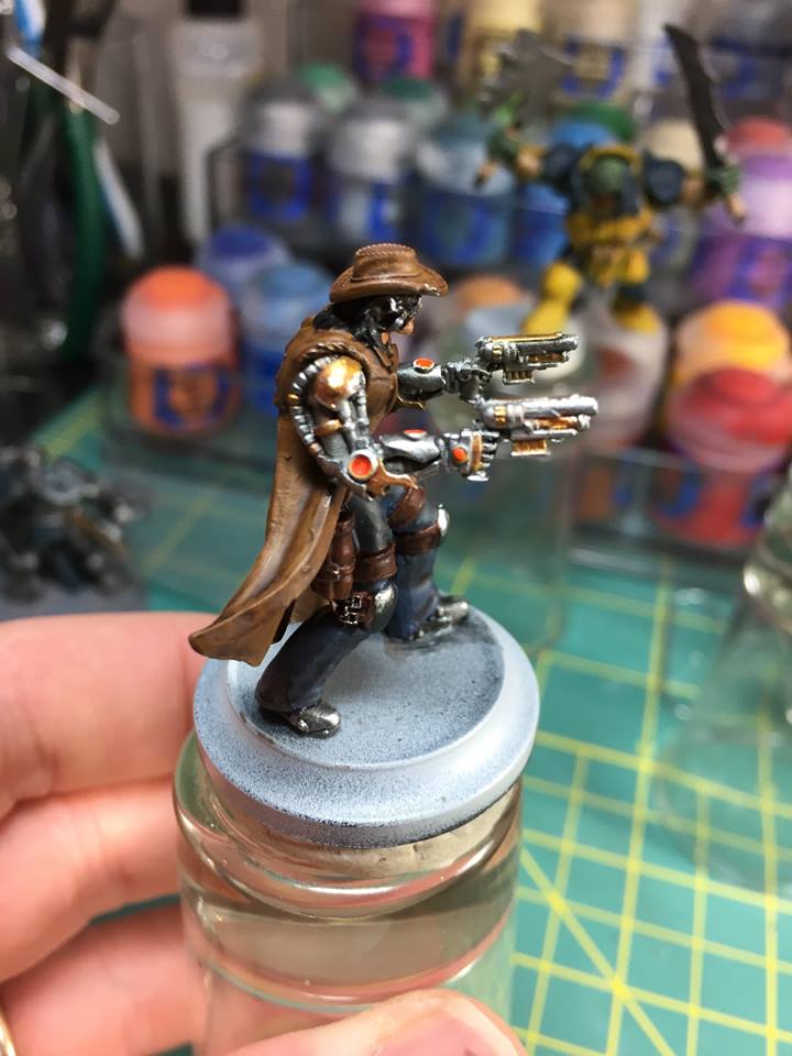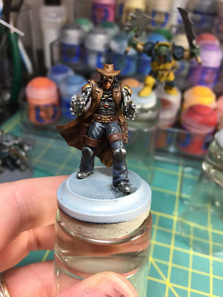 Coincidentally, I'm painting a Wild West Exodus Jesse James at the moment too, for the monthly painting challenge thread.. Mine is the Legendary Jesse James figure, which comes with a scenic base. If I have time in the morning, I'll post a WIP pic in the challenge thread.