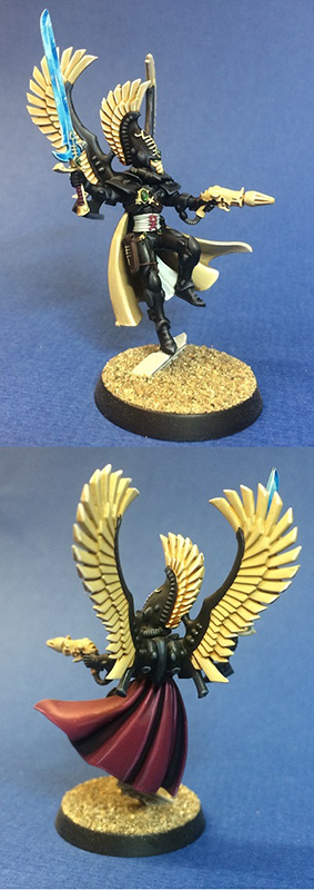 I did some looking around on the web yesterday, and I saw all different kinds of colors for Swooping Hawk Wings for Eldar Ulthwé. The two that stuck out to me the most was a model using the bone color for the feathers and black for where they attach. Dawn of War 2 uses black for the feathers and red for where they attach. I don't see anything in GW's painting guide on how to paint Ulthwé Swooping Hawk Wing feathers. So, black feathers? Bone feathers? Red feathers? Which do you see more often?
