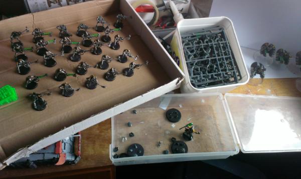 38 warriors(12 on spruce, some not fully built but all there) & all the scarabs to go with them, but some snapped off there stands.