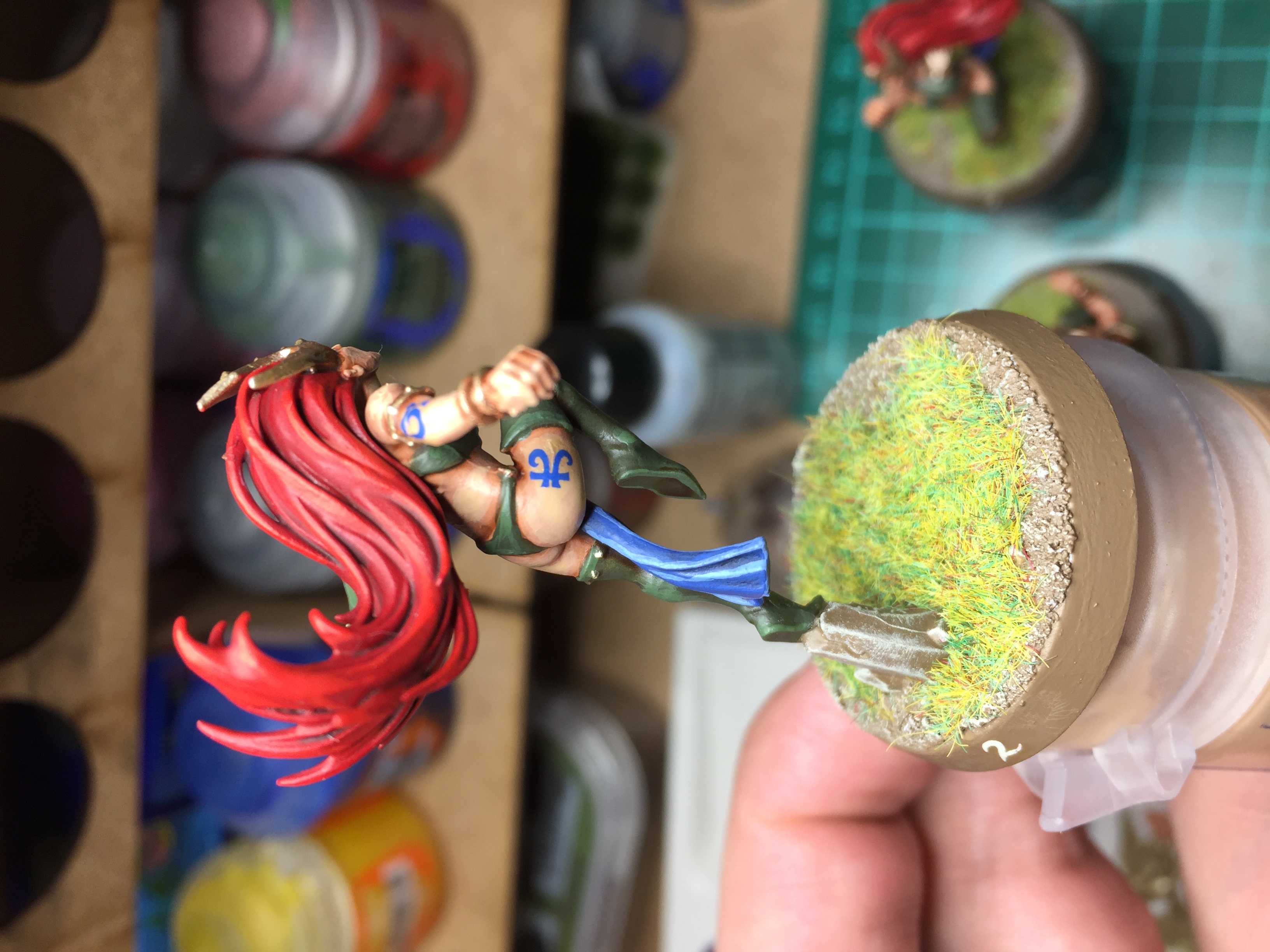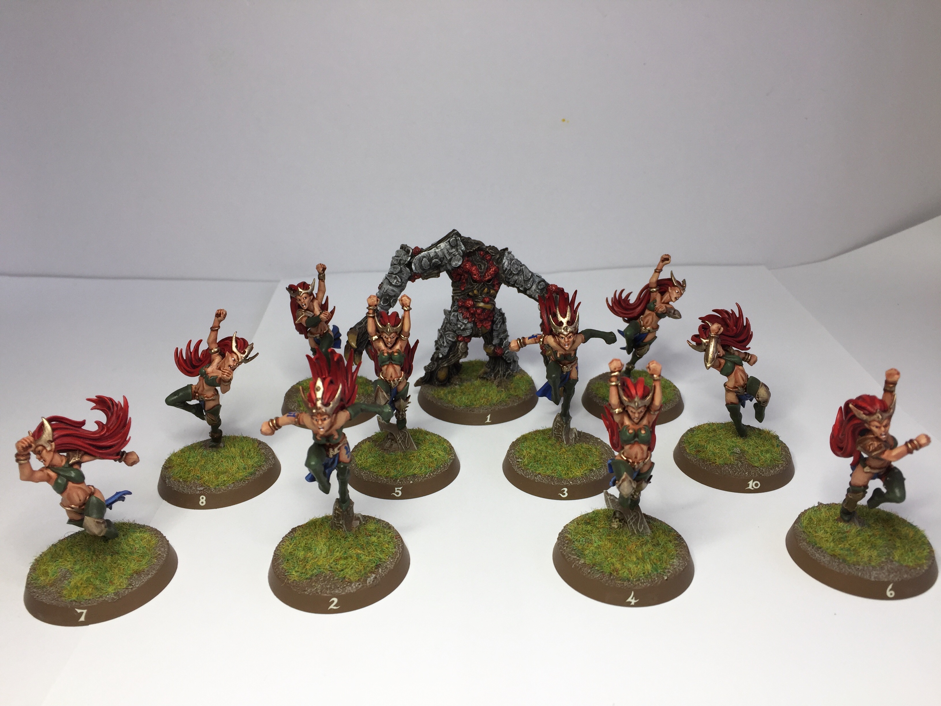 The two with arms in the air are catchers, and the two with arms outstretched and with warpaint are my wardancers. The rest are linemen(women). The four positionals are also the only ones who are raised up off their bases, so are slightly taller.