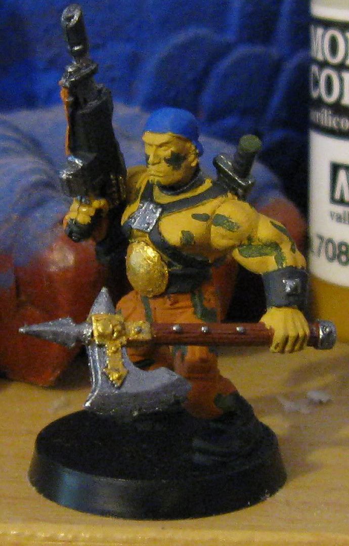 Here is straight VMC Orange Brown as I use it on my Penal Legion. I didn't shade or anything just a little dark green for a slightly-camo look for Penal Legion.