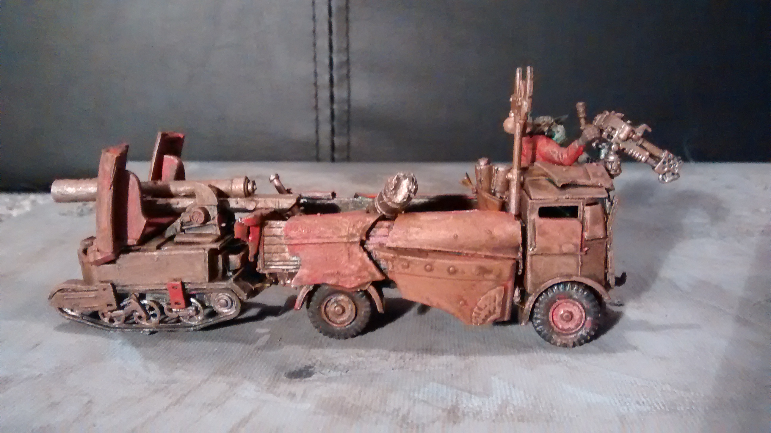 The truck is made from an AEC Matador and the field gun is a universal carrier, both originally airfix models