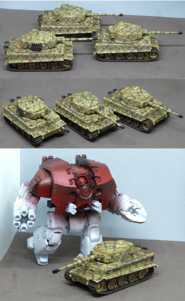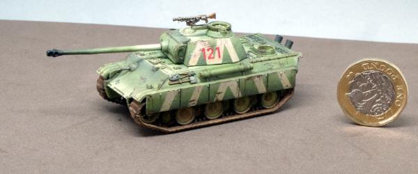 First German kitten - 1/100 Panther with late war camo (green as base colour, not dunkelgelb). It was my first serious attempt with colour modulation, and it's still my favourite mini, I love that camo: